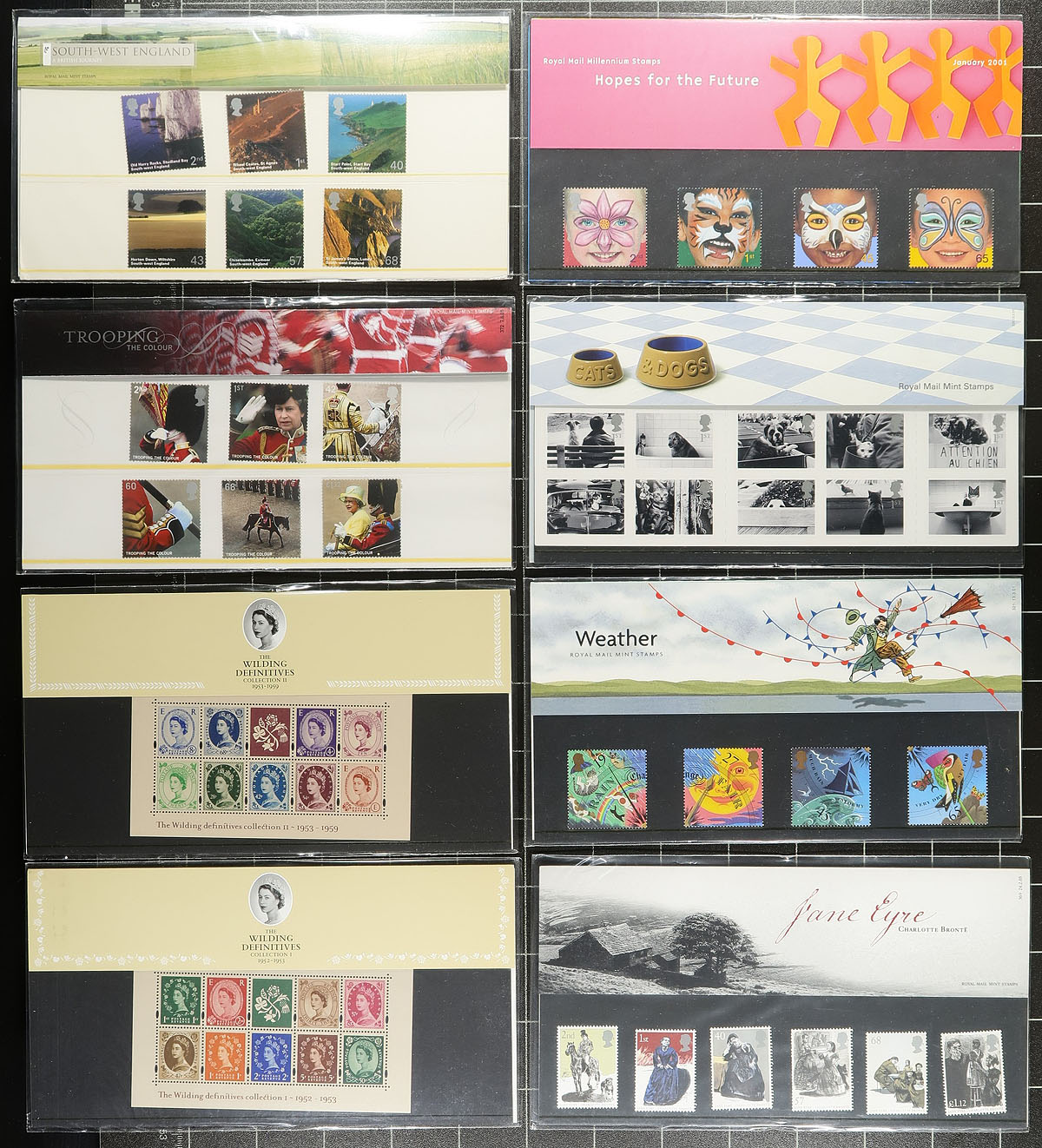 Nice collection of never hinged Great Britain in presentation packs, 91 different in total ranging from 1999 to 2005. We note several better denominations, including many "1st" issues, with face value of the lot currently at £435.00. A nice lot which will have a surprisingly good catalogue value. Clean and very fine. Estimate =