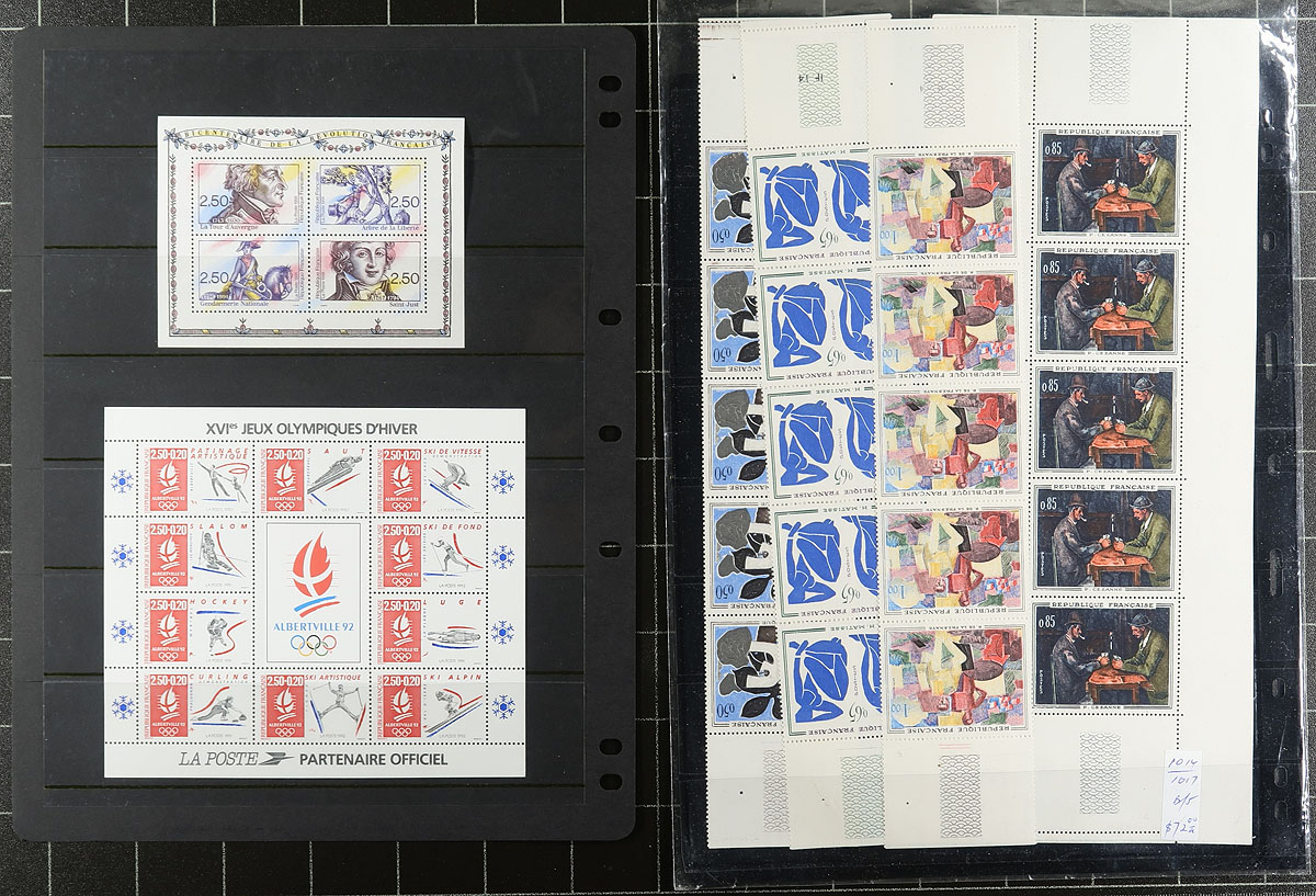 Clean accumulation of primarily never hinged worldwide stamps, containing many hundreds of issues in two stockbooks and a handful of stock pages. A cursory check indicated material generally ranging from the 1960's to the 1990's, with better representation from the British Commonwealth (including Dominica, Fiji, Egypt, and more), and European countries including France, Finland, and Germany. Most of the material has been catalogued by the owner using an older Scott catalogue totaling US$823.00, leaving better finds to the dedicated collector. A nice lor for the worldwide collector, overall fine to very fine. Estimate =