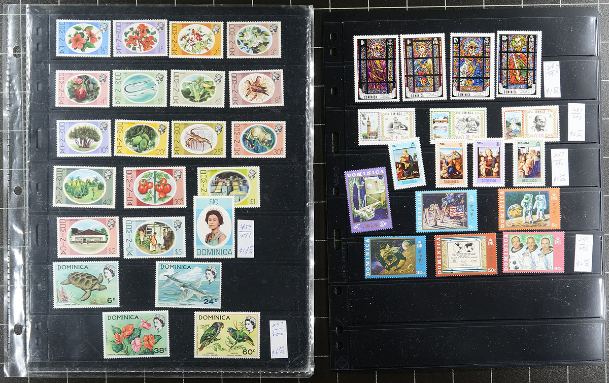 Clean accumulation of primarily never hinged worldwide stamps, containing many hundreds of issues in two stockbooks and a handful of stock pages. A cursory check indicated material generally ranging from the 1960's to the 1990's, with better representation from the British Commonwealth (including Dominica, Fiji, Egypt, and more), and European countries including France, Finland, and Germany. Most of the material has been catalogued by the owner using an older Scott catalogue totaling US$823.00, leaving better finds to the dedicated collector. A nice lor for the worldwide collector, overall fine to very fine. Estimate =
