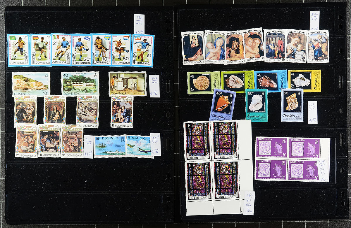 Clean accumulation of primarily never hinged worldwide stamps, containing many hundreds of issues in two stockbooks and a handful of stock pages. A cursory check indicated material generally ranging from the 1960's to the 1990's, with better representation from the British Commonwealth (including Dominica, Fiji, Egypt, and more), and European countries including France, Finland, and Germany. Most of the material has been catalogued by the owner using an older Scott catalogue totaling US$823.00, leaving better finds to the dedicated collector. A nice lor for the worldwide collector, overall fine to very fine. Estimate =