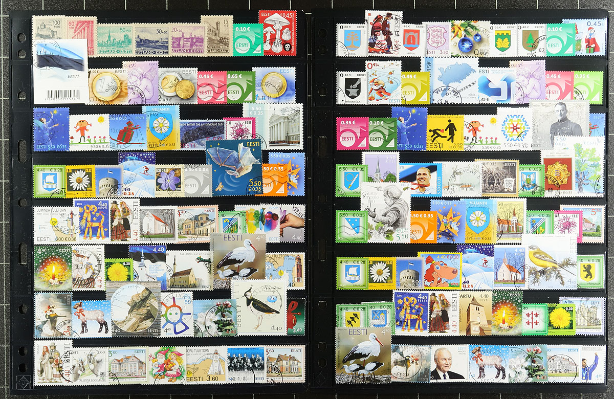 Nice little lot of used Estonia, 1919-2014, containing as few hundred stamps in about 10 stock or album pages. The lot generally ranges from Scott #1/770, containing singles and a few souvenir sheets. Owner's 2019 Scott catalogue value for the lot totals $359.00, noting a few nice 'sock on the nose' town cancels. A nice lot for all collectors. Estimate =