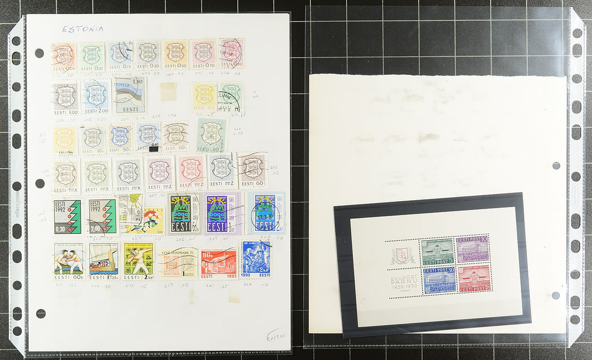 Nice little lot of used Estonia, 1919-2014, containing as few hundred stamps in about 10 stock or album pages. The lot generally ranges from Scott #1/770, containing singles and a few souvenir sheets. Owner's 2019 Scott catalogue value for the lot totals $359.00, noting a few nice 'sock on the nose' town cancels. A nice lot for all collectors. Estimate =
