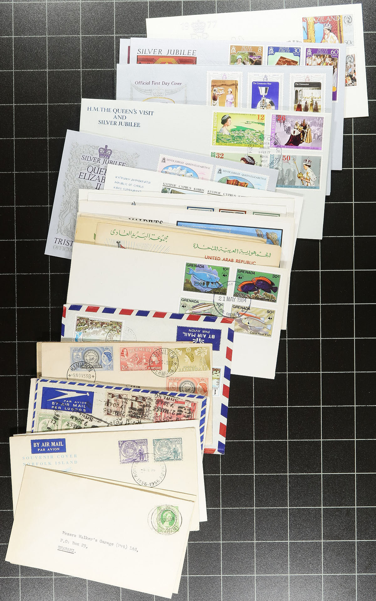 British Commonwealth Covers. Nice group of roughly 250 covers, 1960's-1980's, almost all appearing to be first day covers with singles, sets, and a few souvenir sheet frankings. We note better representation from Oceania, West Indies, and British Africa, along with a few other regions. A nice group for collectors and dealers alike, a few small bends on a few covers, overall fine to very fine. Estimate =