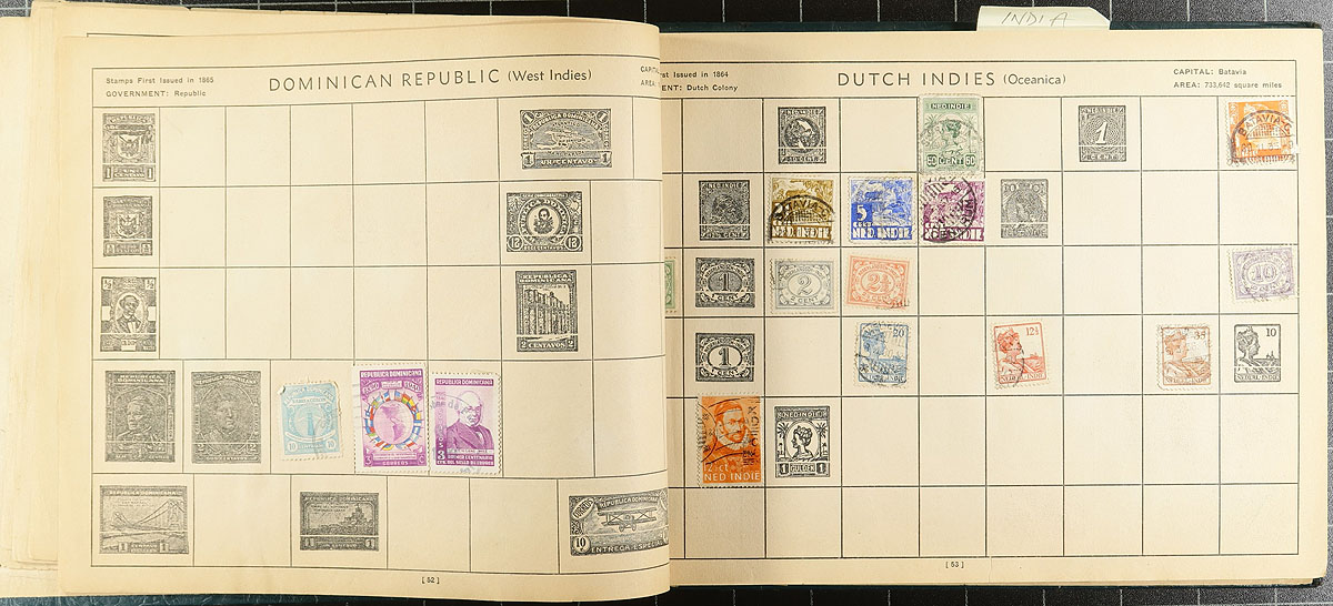 Accumulation of thousands of stamps in 5 albums. The bulk of the material is in a thick Citation album, containing a few thousand stamps with material generally ranging from the 1920's to the 1980's, with the other 4 albums containing several hundreds of stamps from the 1880s onwards. We note better representation from European, British Commonwealth, and Asian countries, noting catalogue values generally ranging $2 and under, but perhaps better finds for dedicated collectors. Should be worth our low estimate. Estimate =