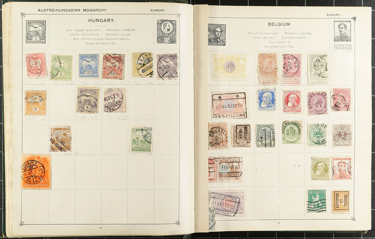 Accumulation of thousands of stamps in 5 albums. The bulk of the material is in a thick Citation album, containing a few thousand stamps with material generally ranging from the 1920's to the 1980's, with the other 4 albums containing several hundreds of stamps from the 1880s onwards. We note better representation from European, British Commonwealth, and Asian countries, noting catalogue values generally ranging $2 and under, but perhaps better finds for dedicated collectors. Should be worth our low estimate. Estimate =