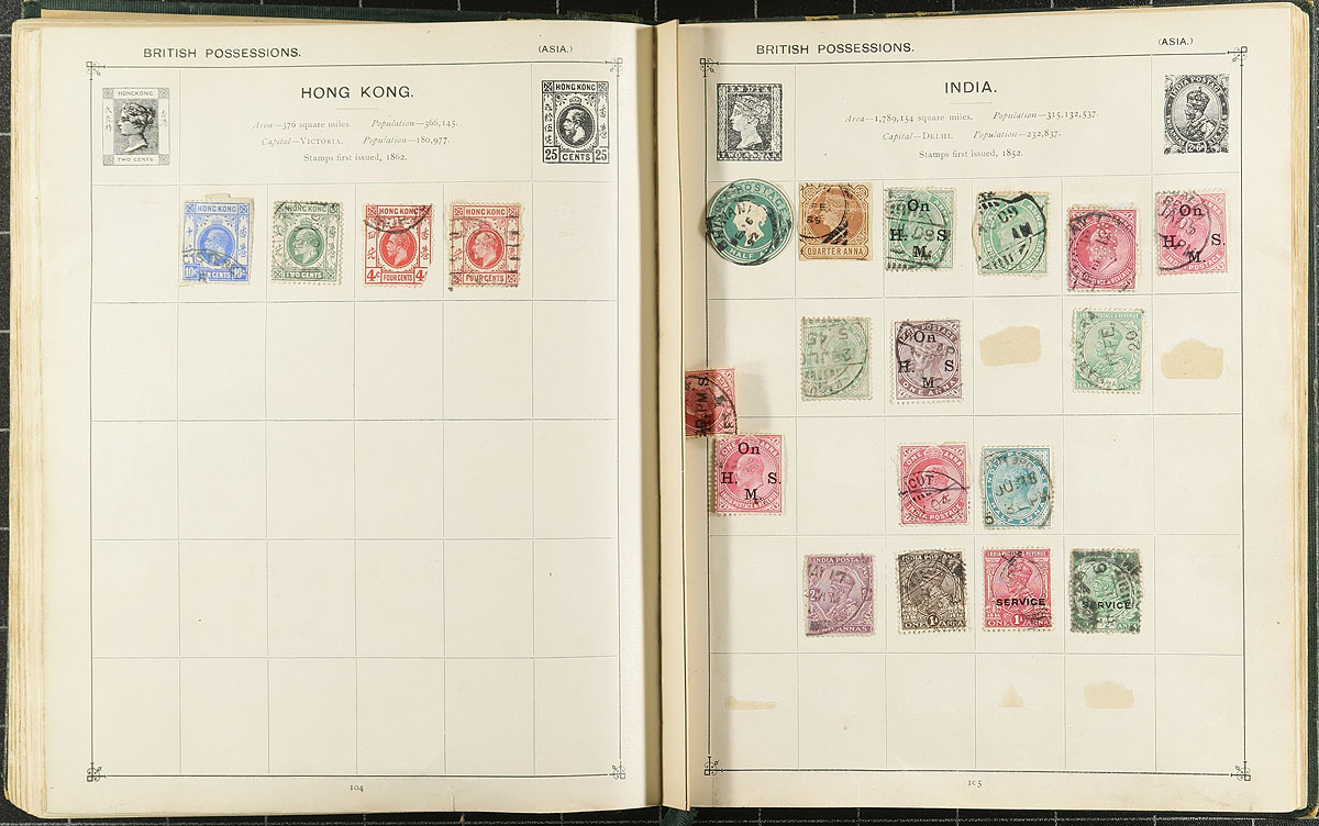 Accumulation of thousands of stamps in 5 albums. The bulk of the material is in a thick Citation album, containing a few thousand stamps with material generally ranging from the 1920's to the 1980's, with the other 4 albums containing several hundreds of stamps from the 1880s onwards. We note better representation from European, British Commonwealth, and Asian countries, noting catalogue values generally ranging $2 and under, but perhaps better finds for dedicated collectors. Should be worth our low estimate. Estimate =