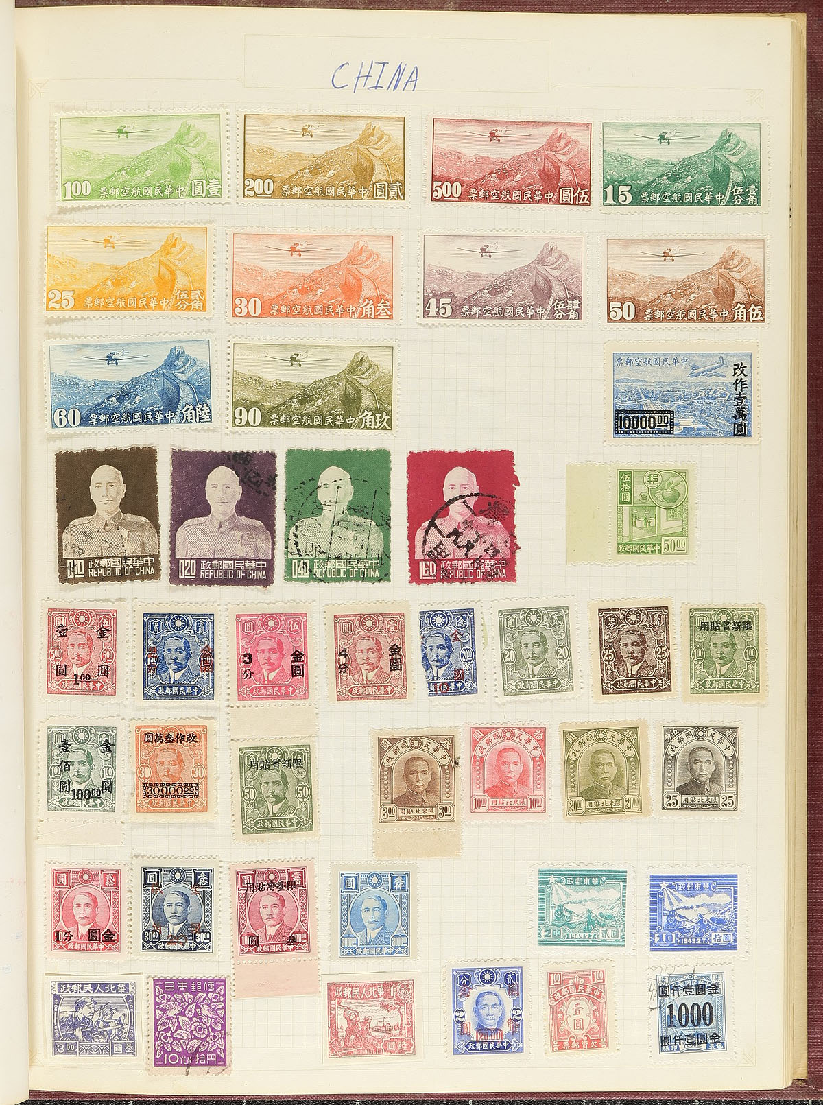 Accumulation of thousands of stamps in 5 albums. The bulk of the material is in a thick Citation album, containing a few thousand stamps with material generally ranging from the 1920's to the 1980's, with the other 4 albums containing several hundreds of stamps from the 1880s onwards. We note better representation from European, British Commonwealth, and Asian countries, noting catalogue values generally ranging $2 and under, but perhaps better finds for dedicated collectors. Should be worth our low estimate. Estimate =