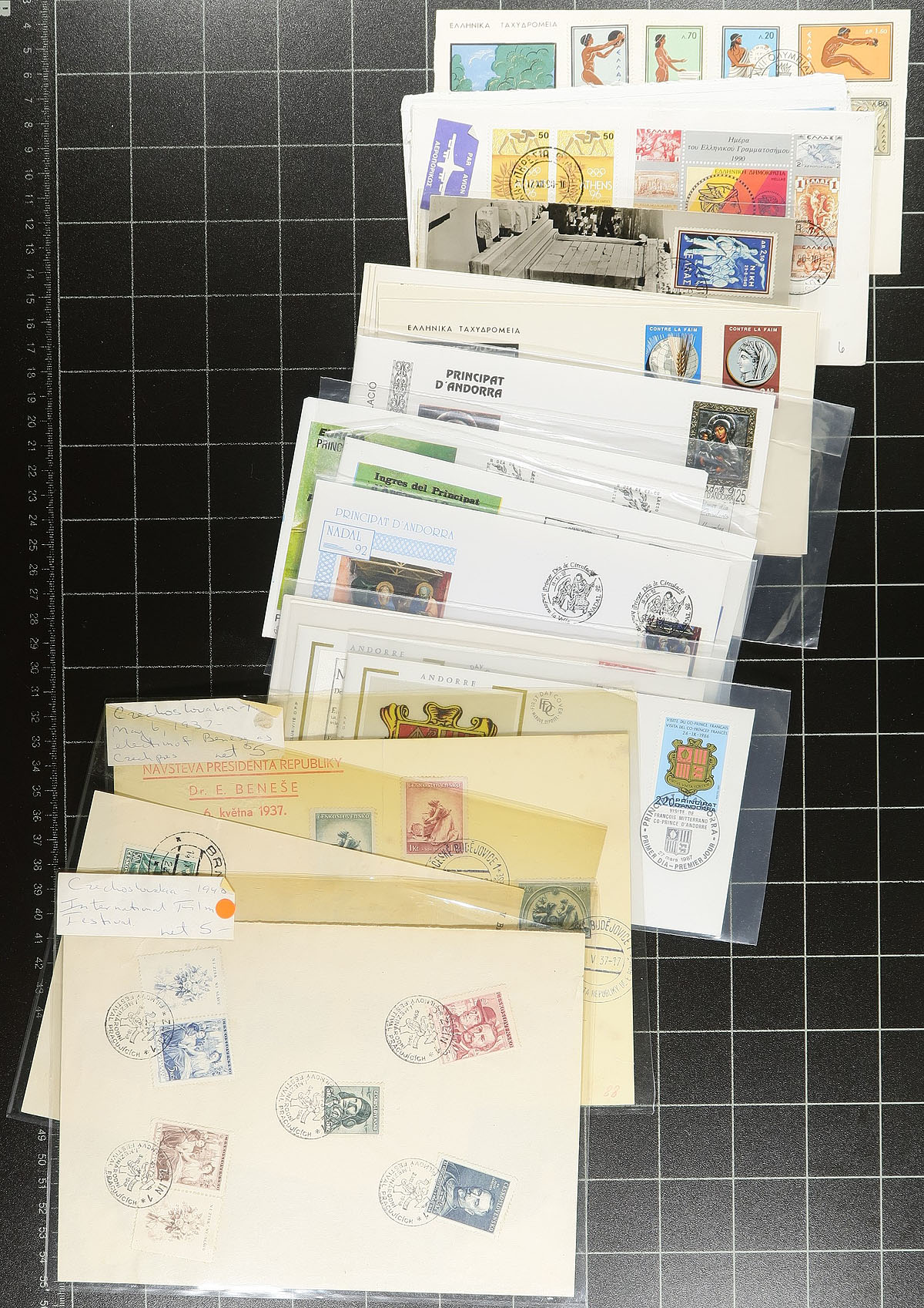Attractive group of roughly 200 worldwide covers, 1910's-1970's, with a decent variety of items including military mail (various censor tapes), first day covers, postal stationery, commercial mail (noting airmail and registered rates), commemorative covers, and more. A cursory check indicated better representation from European countries (especially Monaco), along with some Asia and other regions. A few of the items have been sleeved and priced in the $2 to $5 range. A nice group for collectors and for dealers to add to dollar boxes. A few small faults with a few of the covers, overall fine to very fine. Estimate =