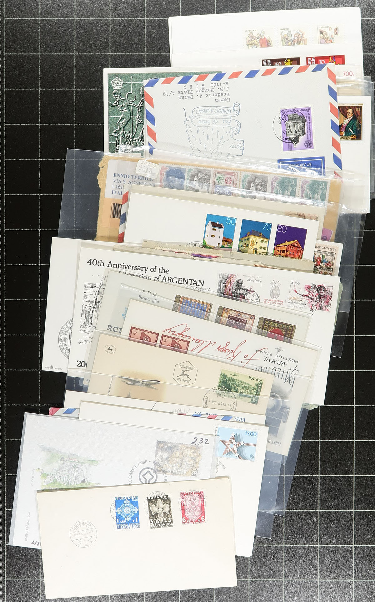 Attractive group of roughly 200 worldwide covers, 1910's-1970's, with a decent variety of items including military mail (various censor tapes), first day covers, postal stationery, commercial mail (noting airmail and registered rates), commemorative covers, and more. A cursory check indicated better representation from European countries (especially Monaco), along with some Asia and other regions. A few of the items have been sleeved and priced in the $2 to $5 range. A nice group for collectors and for dealers to add to dollar boxes. A few small faults with a few of the covers, overall fine to very fine. Estimate =