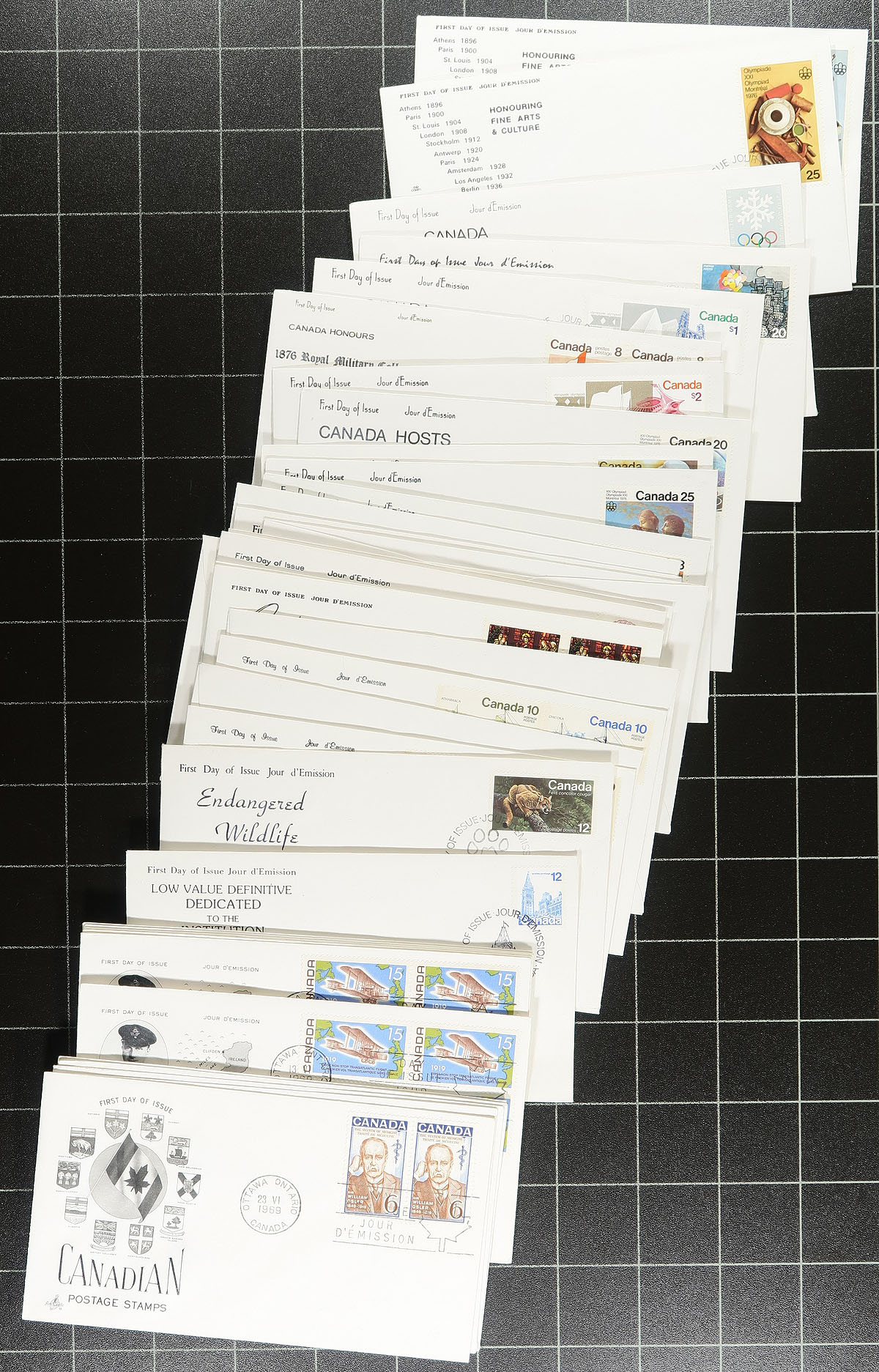 First Day Covers. Nice group of roughly 500 private cachet first day cover, 1960's-1970's, noting singles, sets, blocks, and high denomination frankings. The majority of cachets are from makers Rosecraft and NR, along with JCR, Capital and a few others. A nice lot for collectors and dealers alike. Estimate =