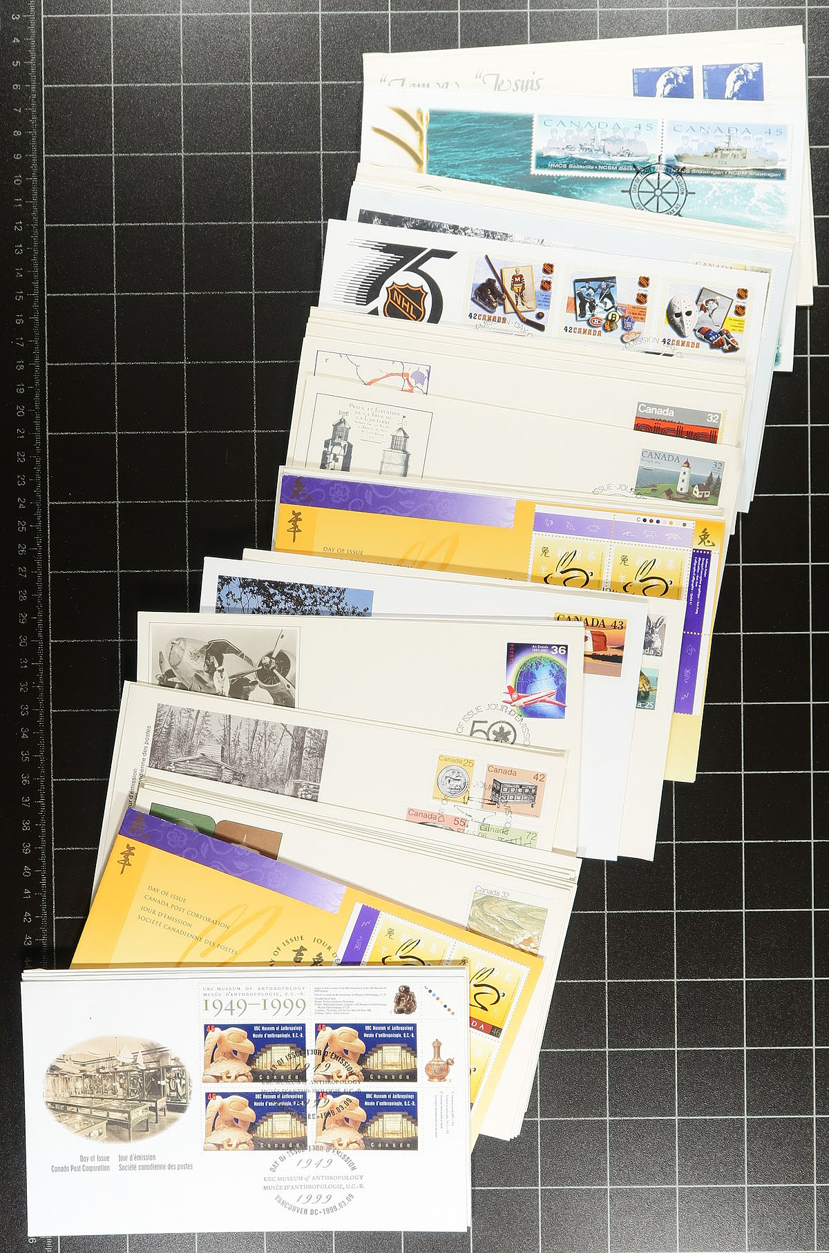 First Day Covers. Accumulation of roughly 750 first day covers in a bankers box, 1960's-1980's, noting singles, sets, plate blocks, souvenir sheet, and high denomination frankings. The lot includes some non cachet covers from the 1960's, with duplication up to 3 for some issues. A nice clean lot for all collectors. Estimate =