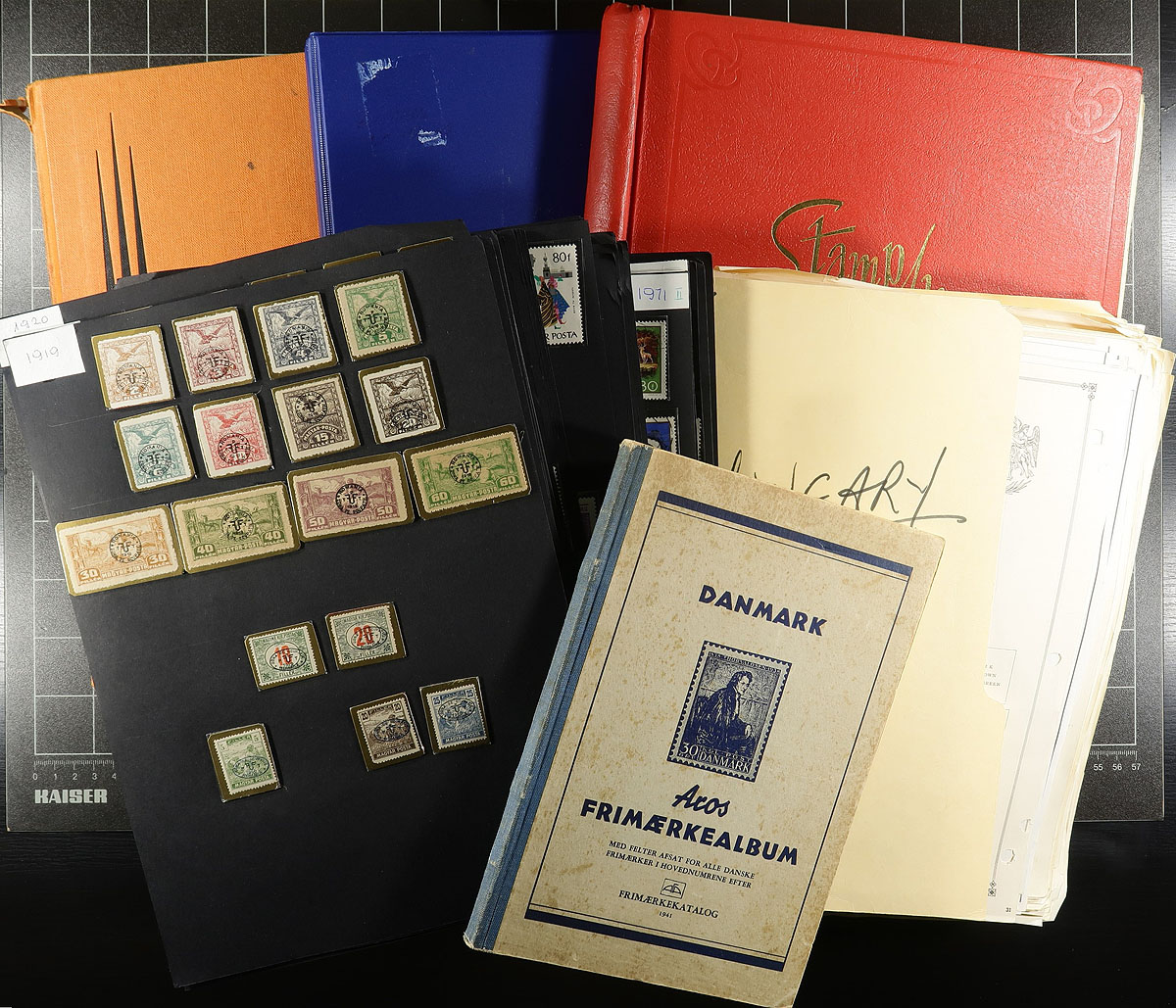 Europe. Eclectic group of European primarily used collections, containing a few thousand stamps in over 100 album pages, and a few stockbooks or albums. The lot contains much better representation from Hungary, along with Poland, Austria, and Denmark. The Hungary material appears to be more in-depth, with the other collections more of a starter type, with material overall generally ranging from the 1900's to the 1970's. Should be worth out low estimate, especially for topical and thematic specialists as we note several suitable subjects. Estimate =