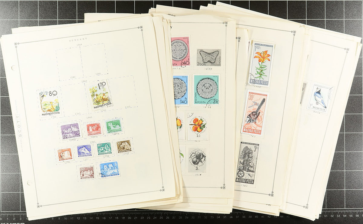 Europe. Eclectic group of European primarily used collections, containing a few thousand stamps in over 100 album pages, and a few stockbooks or albums. The lot contains much better representation from Hungary, along with Poland, Austria, and Denmark. The Hungary material appears to be more in-depth, with the other collections more of a starter type, with material overall generally ranging from the 1900's to the 1970's. Should be worth out low estimate, especially for topical and thematic specialists as we note several suitable subjects. Estimate =