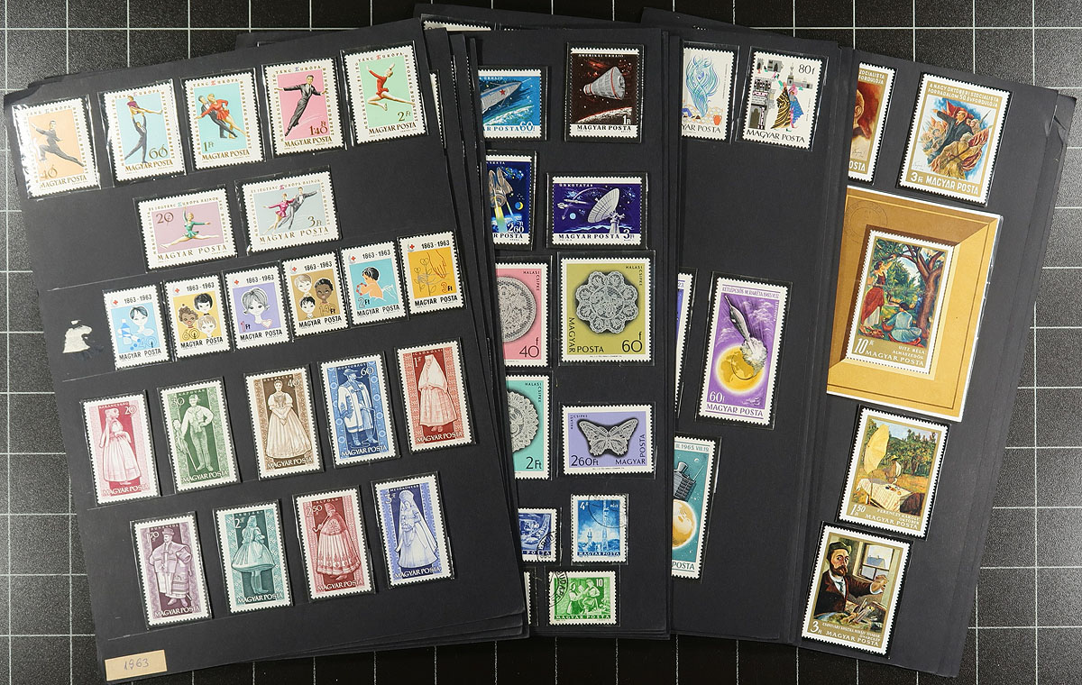 Europe. Eclectic group of European primarily used collections, containing a few thousand stamps in over 100 album pages, and a few stockbooks or albums. The lot contains much better representation from Hungary, along with Poland, Austria, and Denmark. The Hungary material appears to be more in-depth, with the other collections more of a starter type, with material overall generally ranging from the 1900's to the 1970's. Should be worth out low estimate, especially for topical and thematic specialists as we note several suitable subjects. Estimate =