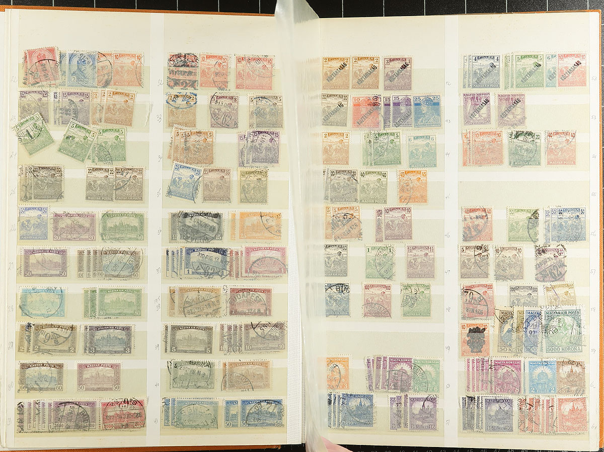 Europe. Eclectic group of European primarily used collections, containing a few thousand stamps in over 100 album pages, and a few stockbooks or albums. The lot contains much better representation from Hungary, along with Poland, Austria, and Denmark. The Hungary material appears to be more in-depth, with the other collections more of a starter type, with material overall generally ranging from the 1900's to the 1970's. Should be worth out low estimate, especially for topical and thematic specialists as we note several suitable subjects. Estimate =