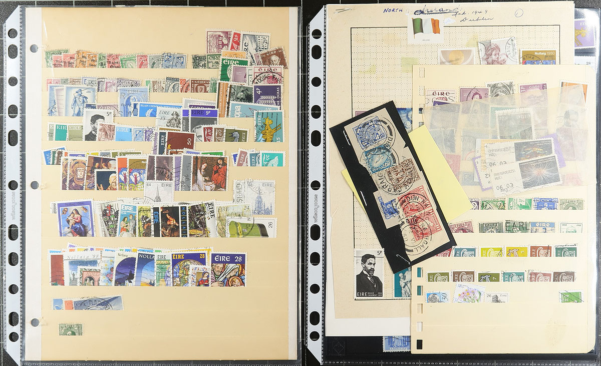 Accumulation of used Ireland, 1922-2010, containing over a 1,000 stamps in several stock pages. The lot generally ranges from Scott #1/1873, containing several sets, and back of the book issues (mainly airmails), with a cursory check indicating some sets cataloguing $10 and up each. Some duplication throughout, still a nice lot for all collectors. Owner's older 2018 Scott US$1,268.00 =