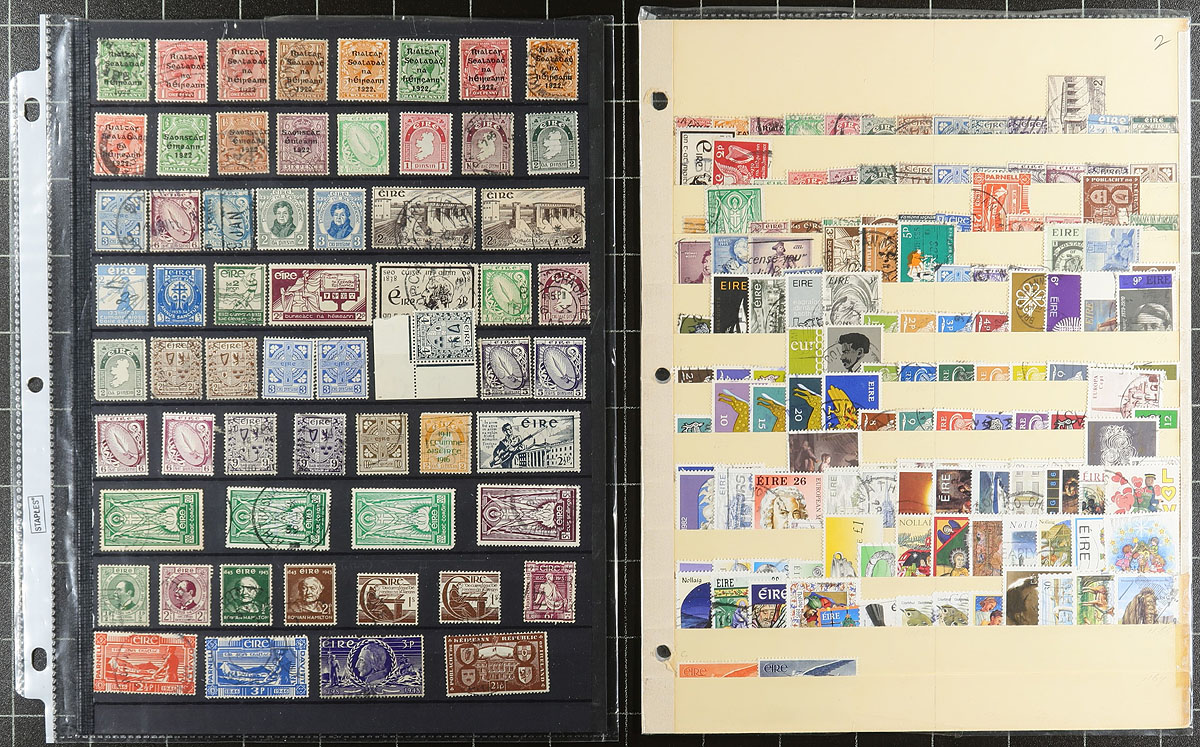 Accumulation of used Ireland, 1922-2010, containing over a 1,000 stamps in several stock pages. The lot generally ranges from Scott #1/1873, containing several sets, and back of the book issues (mainly airmails), with a cursory check indicating some sets cataloguing $10 and up each. Some duplication throughout, still a nice lot for all collectors. Owner's older 2018 Scott US$1,268.00 =