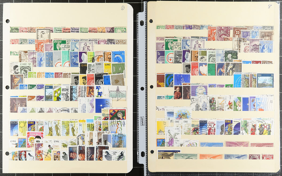 Accumulation of used Ireland, 1922-2010, containing over a 1,000 stamps in several stock pages. The lot generally ranges from Scott #1/1873, containing several sets, and back of the book issues (mainly airmails), with a cursory check indicating some sets cataloguing $10 and up each. Some duplication throughout, still a nice lot for all collectors. Owner's older 2018 Scott US$1,268.00 =