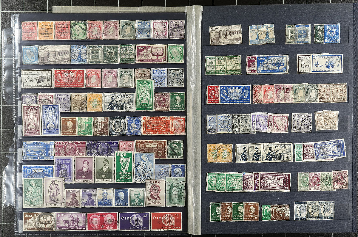 Accumulation of used Ireland, 1922-2010, containing over a 1,000 stamps in several stock pages. The lot generally ranges from Scott #1/1873, containing several sets, and back of the book issues (mainly airmails), with a cursory check indicating some sets cataloguing $10 and up each. Some duplication throughout, still a nice lot for all collectors. Owner's older 2018 Scott US$1,268.00 =