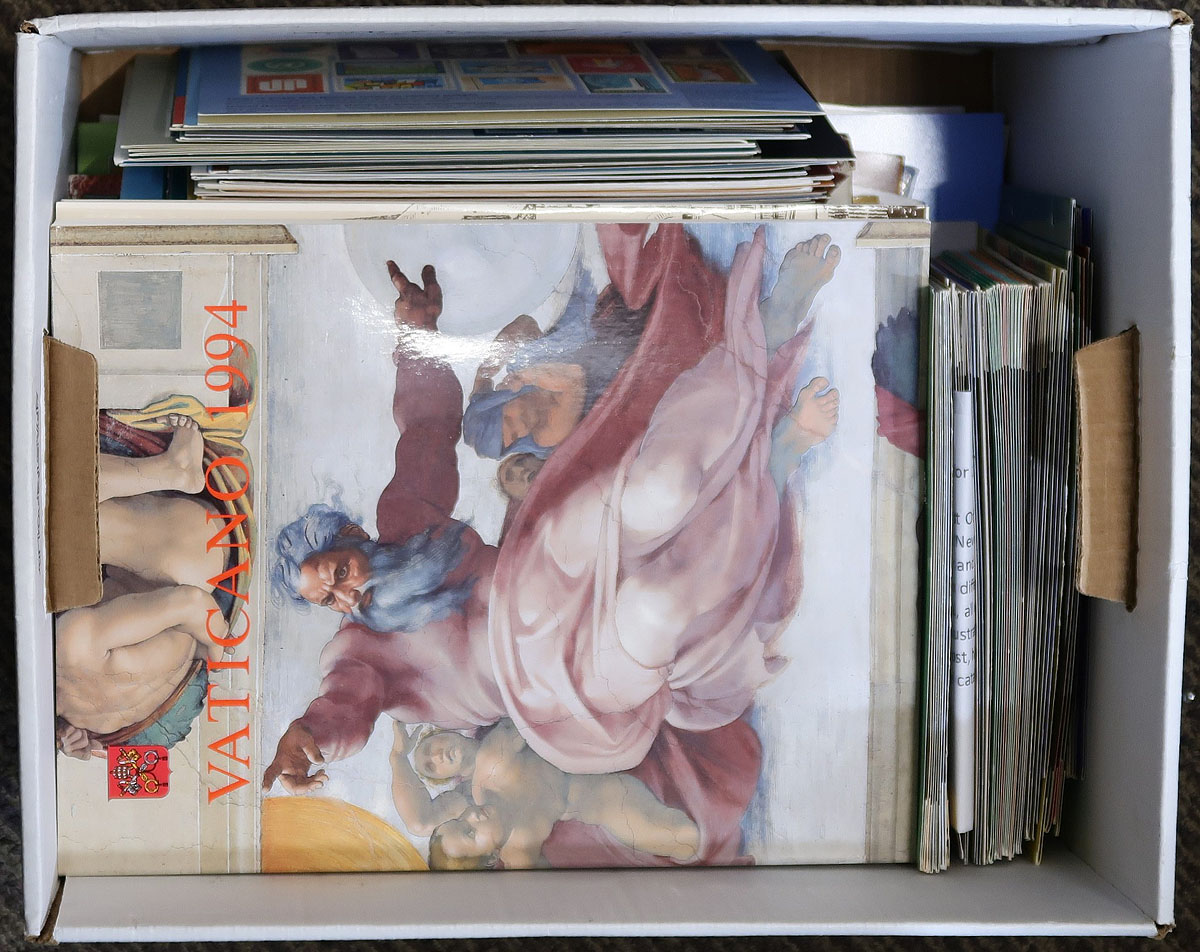 Accumulation of worldwide annual collections and thematic packs, 1970's-1990's, containing roughly 100 items with hundreds of stamps in several folders. We note better representation from Australia, New Zealand, United States, Vatican City, and United Nations, and from a few other regions. The include Vatican City annual collections from years 1985, 1988, 1991, and 1994, and so much more. The lot would originally retail several hundreds of dollars, with catalogue values in the same region. Ideal for just about everyone including topical and thematic collectors and dealers alike. Estimate =