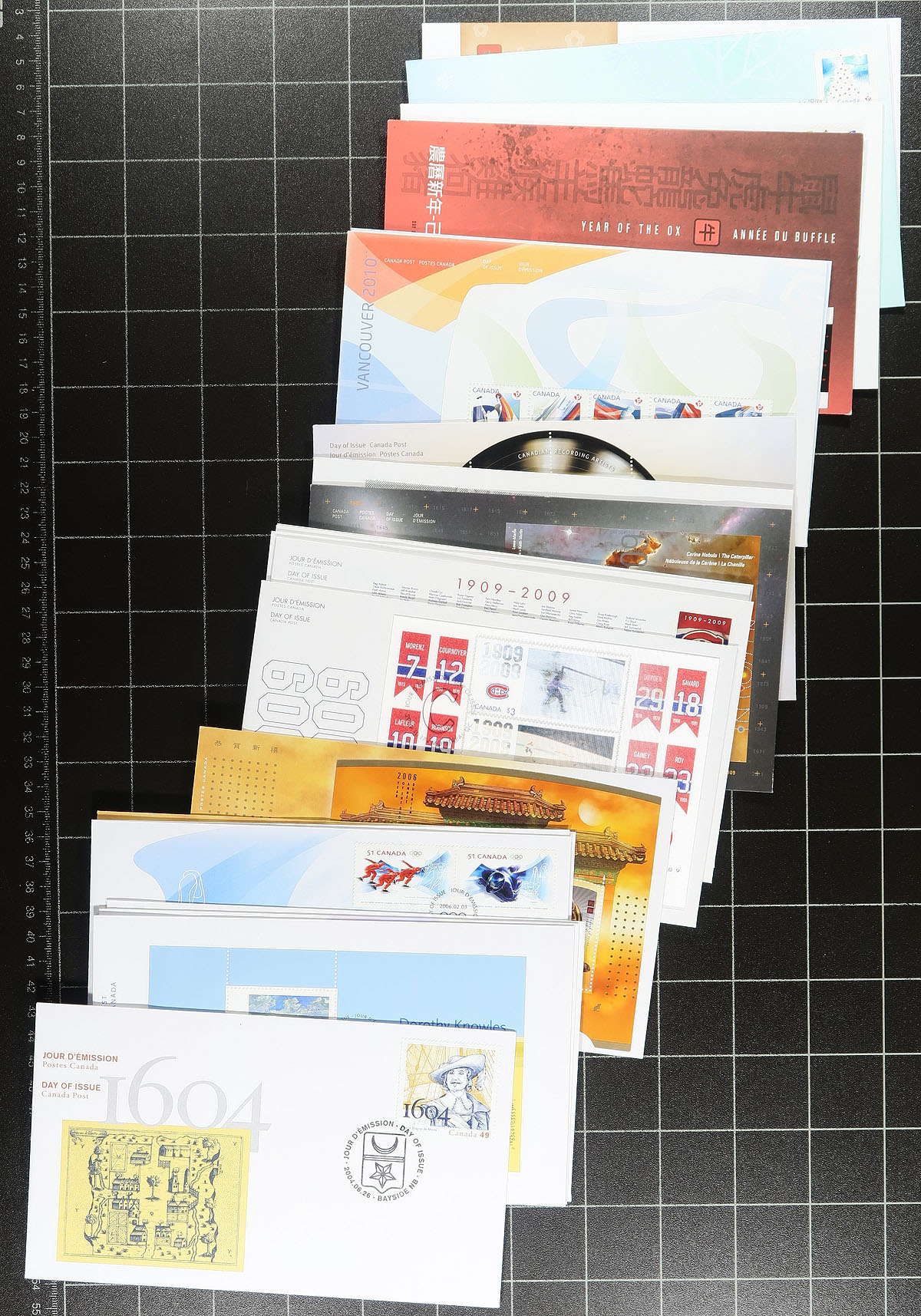 First Day Covers. Accumulation of roughly 275 modern first day covers, 2000-2010, in a box, noting singles, sets, plate blocks and souvenir sheet frankings. Some mild duplication (generally up to 3) for some issues. A nice clean lot for collectors and dealers alike. Estimate =