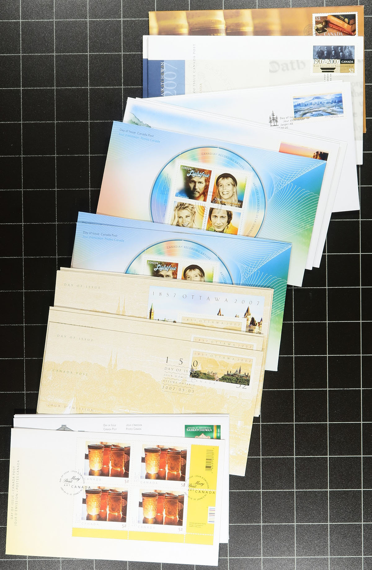 First Day Covers. Accumulation of roughly 275 modern first day covers, 2000-2010, in a box, noting singles, sets, plate blocks and souvenir sheet frankings. Some mild duplication (generally up to 3) for some issues. A nice clean lot for collectors and dealers alike. Estimate =