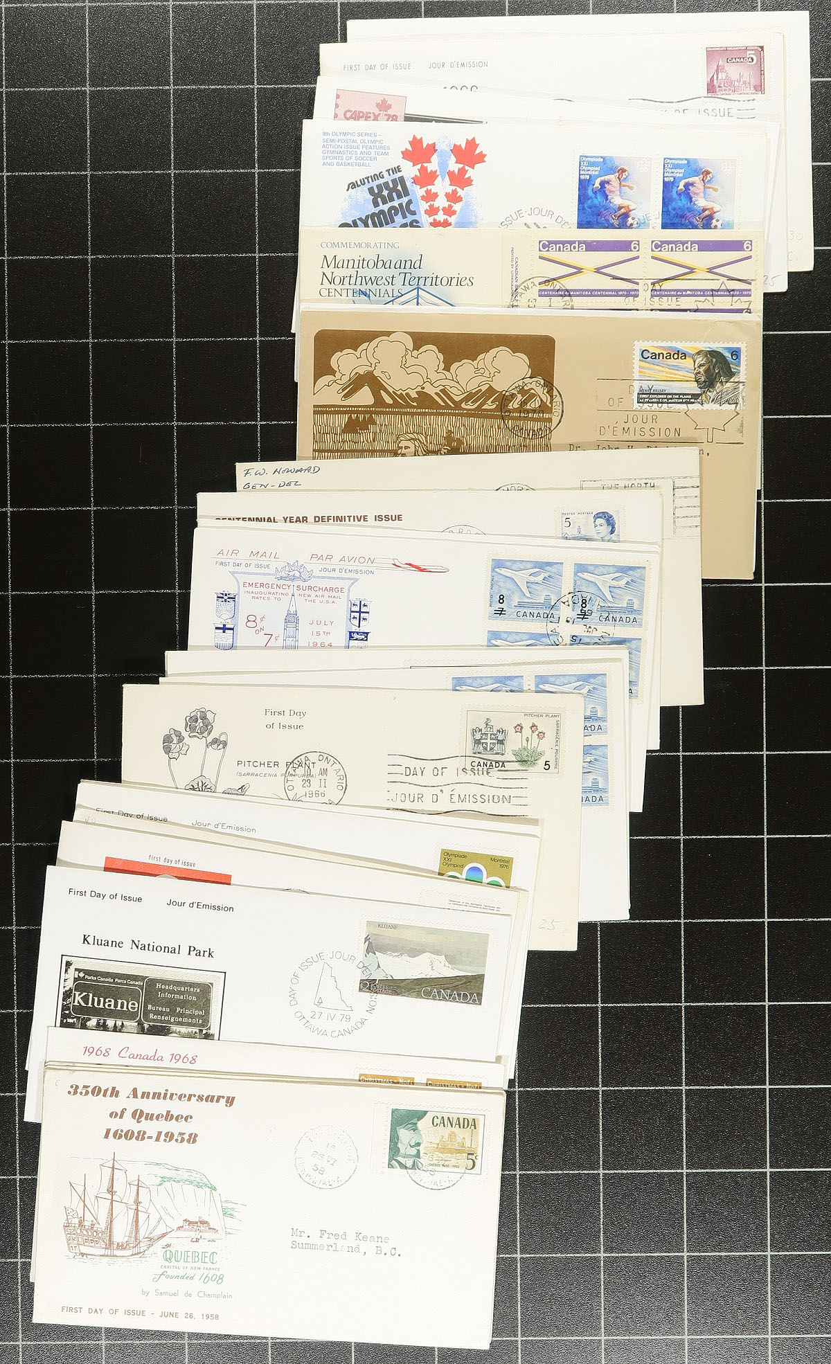 First Day Covers. Lovely group of over 500 private cachet first day covers, 1950's-1970's, noting singles, pairs, sets, and blocks, and a few plate blocks frankings. Just a few of the cachet makers include JCR, Caneco, H & E, Cole, Rosecraft, and a few more. Mild duplication through, making this a nice lot for collectors and dealers alike. Estimate =