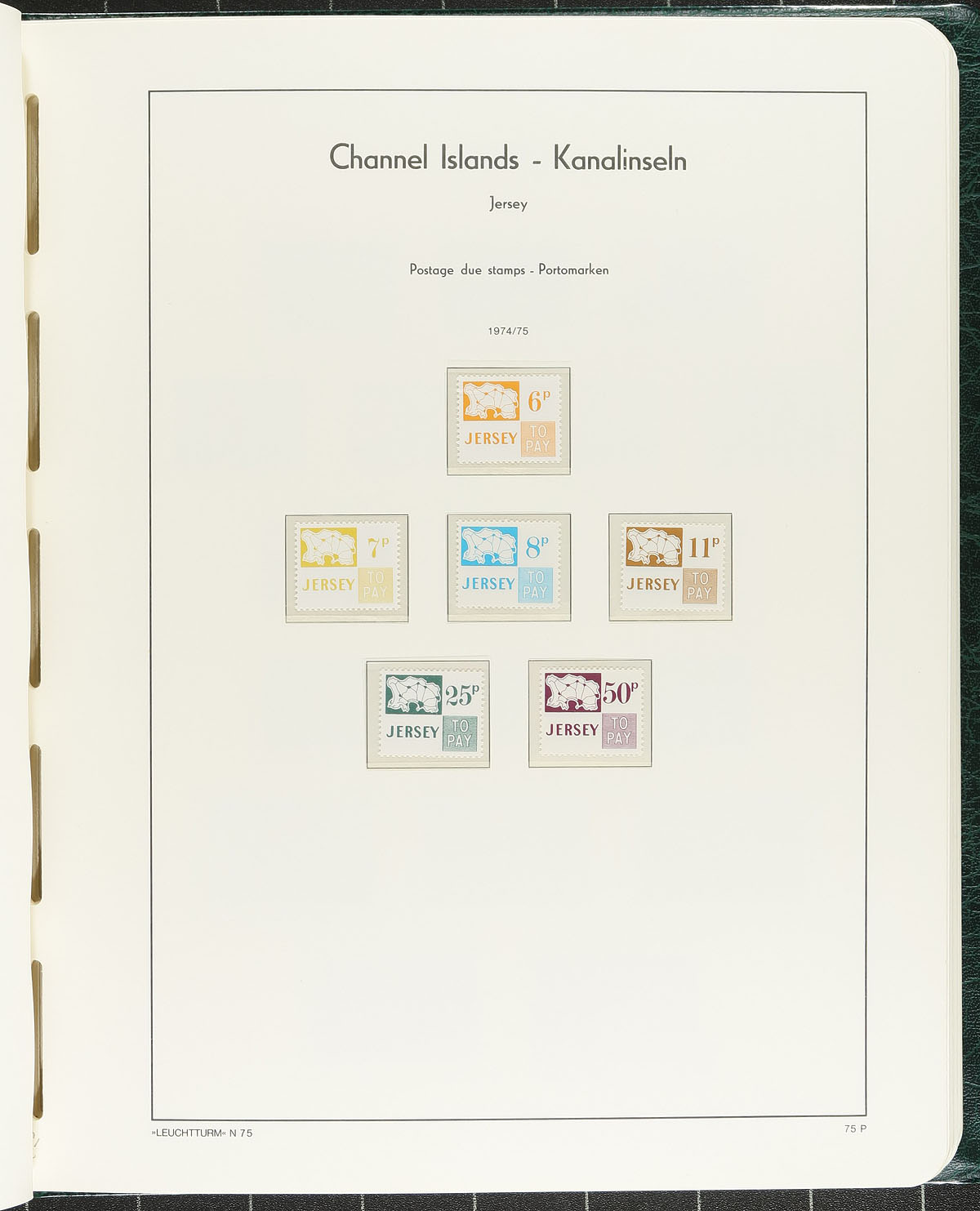 Lovely collection of primarily never hinged Jersey, 1941-2006, containing roughly 1,450 stamps in two Lighthouse albums with slipcases. The collection ranges from Scott #N1/1206, containing several sets, souvenir sheets, and a few postage dues. A spot check indicated some sets cataloguing $5 to $15 each, with a 2026 Scott catalogue value for the collection totaling US$1,755.00 ($2,369.25 CDN). A lovely collection that should be continued, very fine. Estimate =