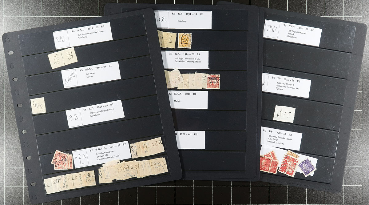 Accumulation of many hundreds of Sweden private perfins, all in roughly 40 stock pages. Many of the perfins have been identified noting several different patterns and stamps. It appears there is heavy duplication for some patterns, still a nice lot for the specialist. Overall fine to very fine. Estimate =