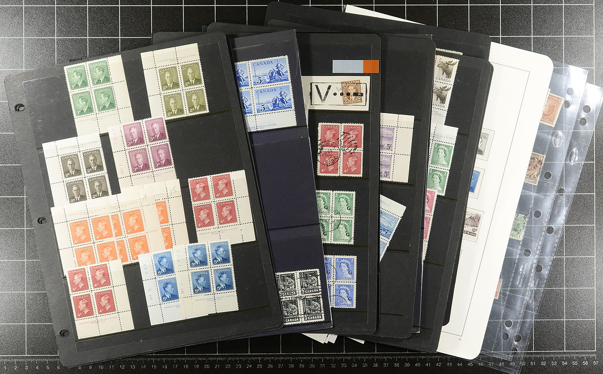 Eclectic lot of mint and used Canada consignment remainders, Small Queens up to the 1990's, containing many hundreds of stamps in a variety of formats including a stockbook, stock pages, etc. A cursory check indicated some interesting material including mint and or used singles. partial sets, blocks, and more, noting Small Queens, Admiral issues, along with many minor varieties from the QEII period (many identified by the owner), conservation booklets, a few Newfoundland stamps, and much more. Some of the items catalogue $10 and up, with some faults throughout. Still an interesting lot for all Canada collectors. Estimate =