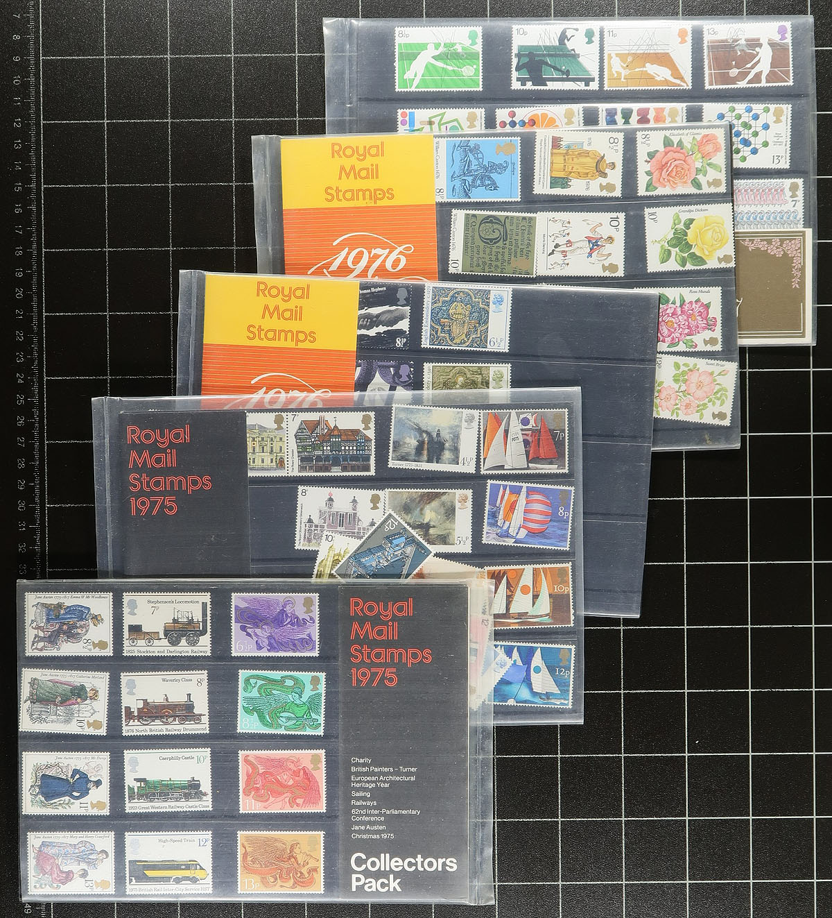 Nice collection of 90 Great Britain presentation packs, 1968-2008, containing 29 from 1968 to 1975, and 41 from 1983 to 2008, along with 20 annual packs from 1968 to 1982. A bit of mild duplication within, with a few missing their plastic wrapping (one appears to have lost a stamp). A nice lot for collectors as this will have a decent catalogue value, with face alone estimated to be in the £75 to £100 range. Estimate =