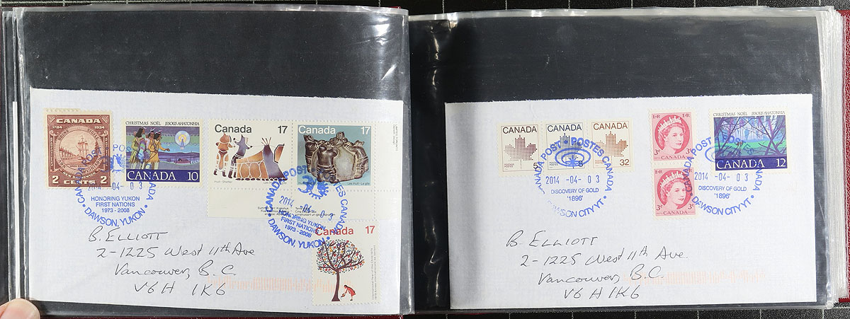 Accumulation of many hundreds of covers and cards, 1920's-2000's. A cursory check indicated representation from across the country noting a wide variety of items including a collection (set) of Maniwaki PQ black and white picture postcards, an album with over 50 covers with pictorial cancels from 2014, two binders with hundreds of spray-on cancels, along with hundreds of loose covers. We spotted a wide variety of town postmark types including cds, split ring, Klussendorf, POCON types and more, along with a variety of rates and frankings. A nice project for the Canada cover collector, a few faults with a few of the covers, overall fine to very fine. Estimate =