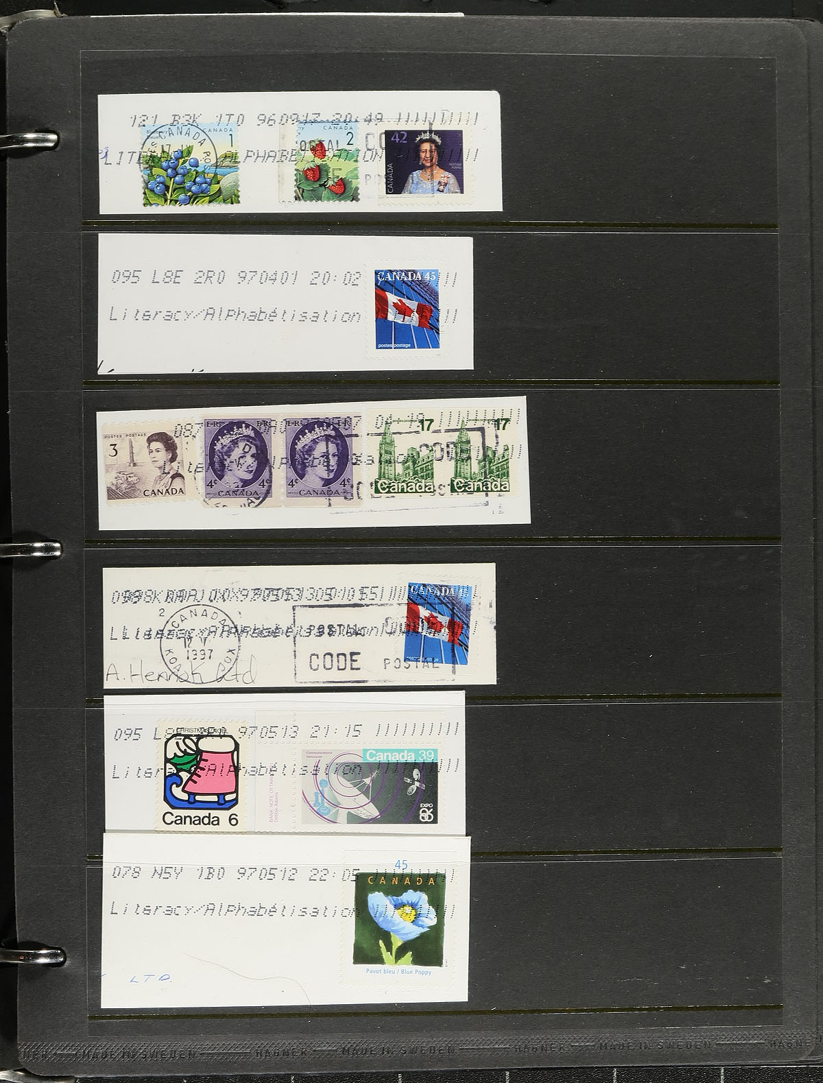 Accumulation of many hundreds of covers and cards, 1920's-2000's. A cursory check indicated representation from across the country noting a wide variety of items including a collection (set) of Maniwaki PQ black and white picture postcards, an album with over 50 covers with pictorial cancels from 2014, two binders with hundreds of spray-on cancels, along with hundreds of loose covers. We spotted a wide variety of town postmark types including cds, split ring, Klussendorf, POCON types and more, along with a variety of rates and frankings. A nice project for the Canada cover collector, a few faults with a few of the covers, overall fine to very fine. Estimate =