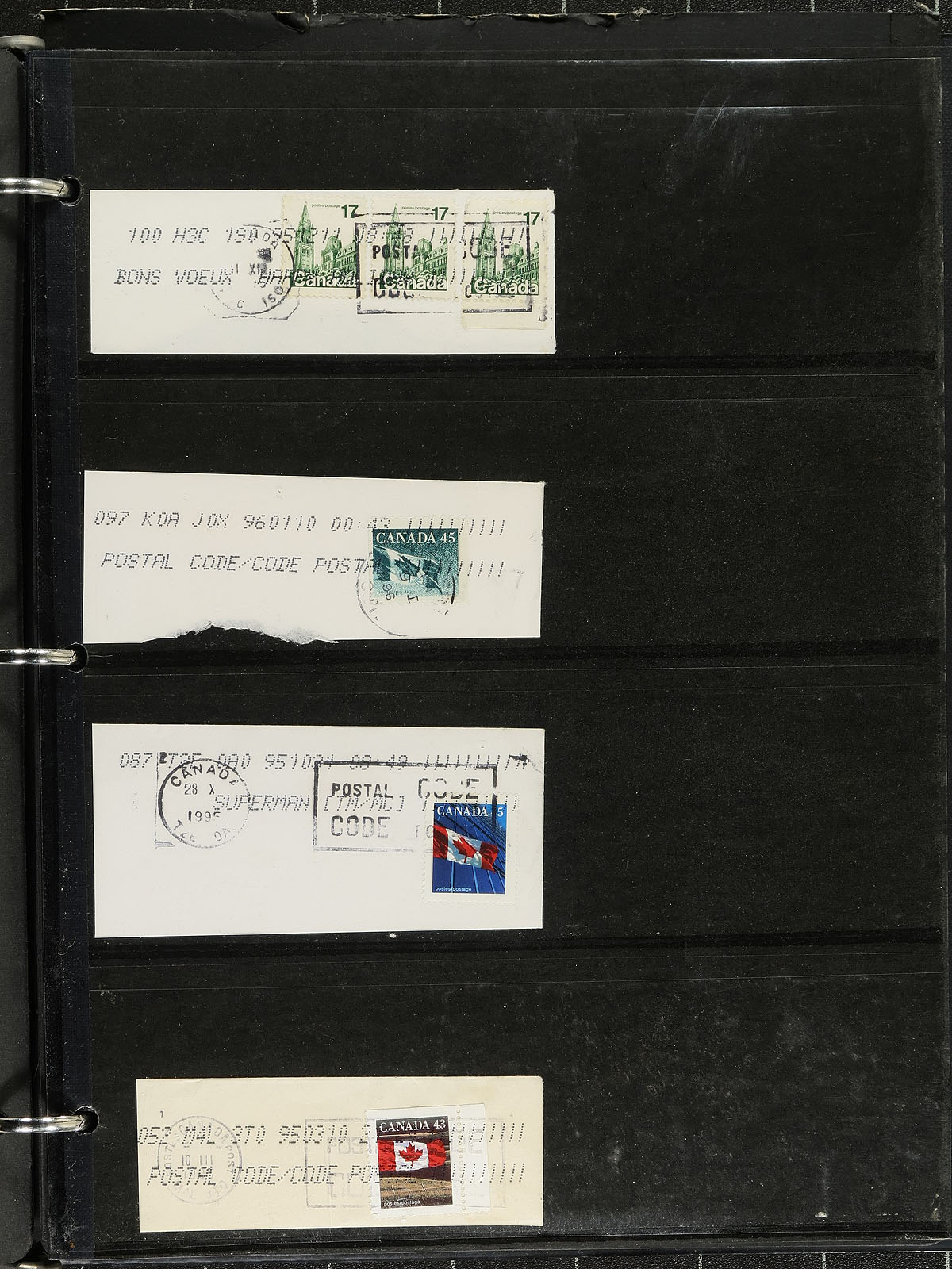 Accumulation of many hundreds of covers and cards, 1920's-2000's. A cursory check indicated representation from across the country noting a wide variety of items including a collection (set) of Maniwaki PQ black and white picture postcards, an album with over 50 covers with pictorial cancels from 2014, two binders with hundreds of spray-on cancels, along with hundreds of loose covers. We spotted a wide variety of town postmark types including cds, split ring, Klussendorf, POCON types and more, along with a variety of rates and frankings. A nice project for the Canada cover collector, a few faults with a few of the covers, overall fine to very fine. Estimate =