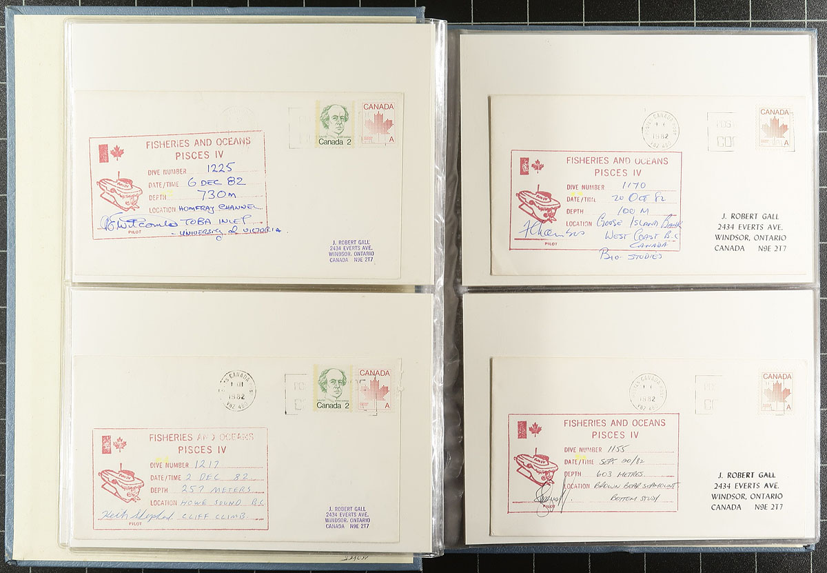 Accumulation of many hundreds of covers and cards, 1920's-2000's. A cursory check indicated representation from across the country noting a wide variety of items including a collection (set) of Maniwaki PQ black and white picture postcards, an album with over 50 covers with pictorial cancels from 2014, two binders with hundreds of spray-on cancels, along with hundreds of loose covers. We spotted a wide variety of town postmark types including cds, split ring, Klussendorf, POCON types and more, along with a variety of rates and frankings. A nice project for the Canada cover collector, a few faults with a few of the covers, overall fine to very fine. Estimate =