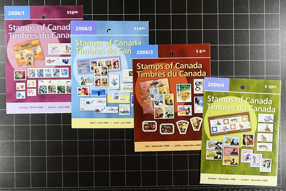 Quarterly Packs. Lot of Quarterly Packs complete for the years 2004 and 2006 complete, all still sealed as received from the Post Office. These contain all of the issues for the years, including many sought-after die cut singles as well as blocks and souvenir sheets. These are now listed in Unitrade but not yet priced, conservatively grouped / counted by the original purchase price, which is lower than what is actually enclosed in the pack due to the increase in value of the Permanent stamps. Eight packs in total. Original Canada Post cost =