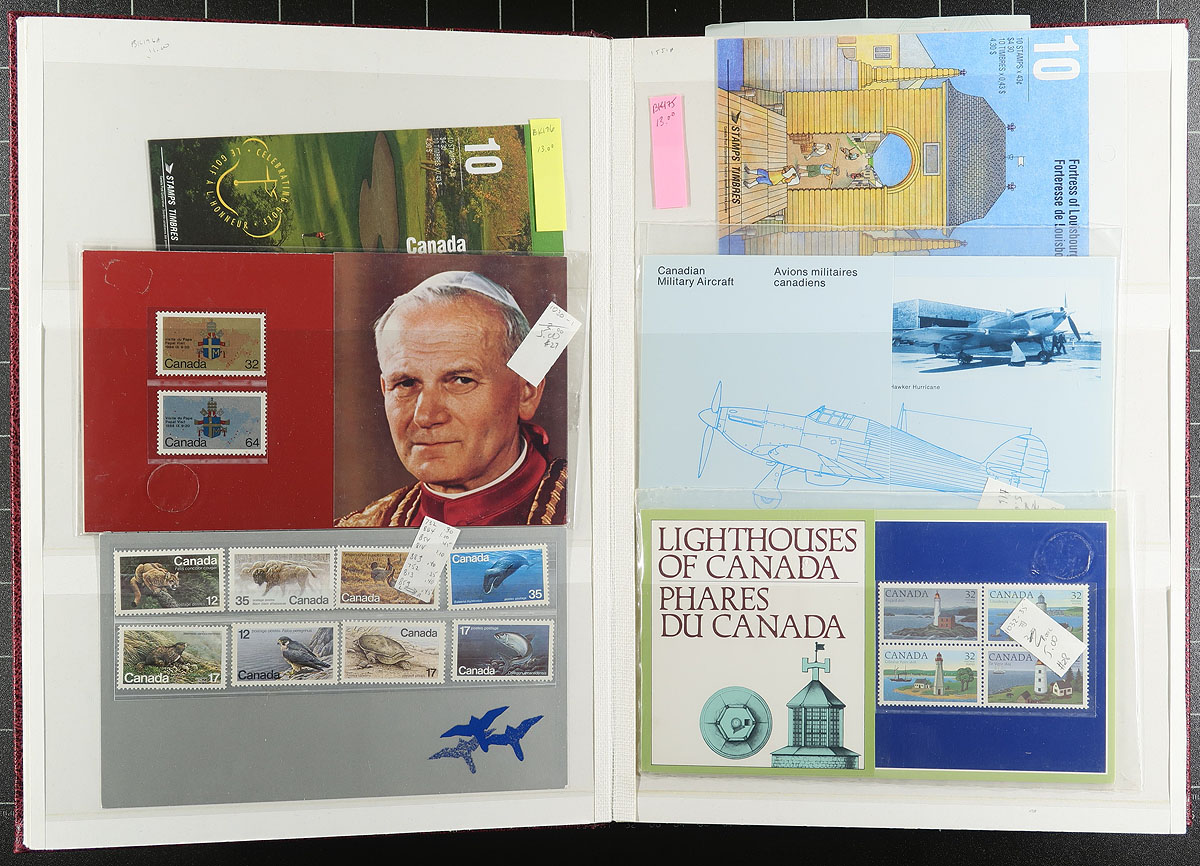 Mostly Modern Mint Holding, of primarily blocks / plate blocks, all arranged in a like-new 32-page KABE padded stockbook (retails for $50.00 alone). Also includes a smattering of FDC / Post Office Packs / Foreign Stamps. Conservatively valued for the usable Canadian face value / postage only. Total face value =