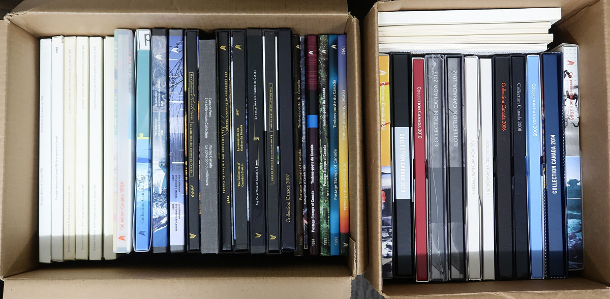 Annual Collections. Large group of 40 annual collections in two boxes from years 1978-2010, 2011 (x2), 2012 (x2), 2013-2014, along with the 2000 Millenium collection. Face value alone totals $1,512.00, with "P" issues only going up in value. Clean and very fine. 2025-2026 Unitrade =