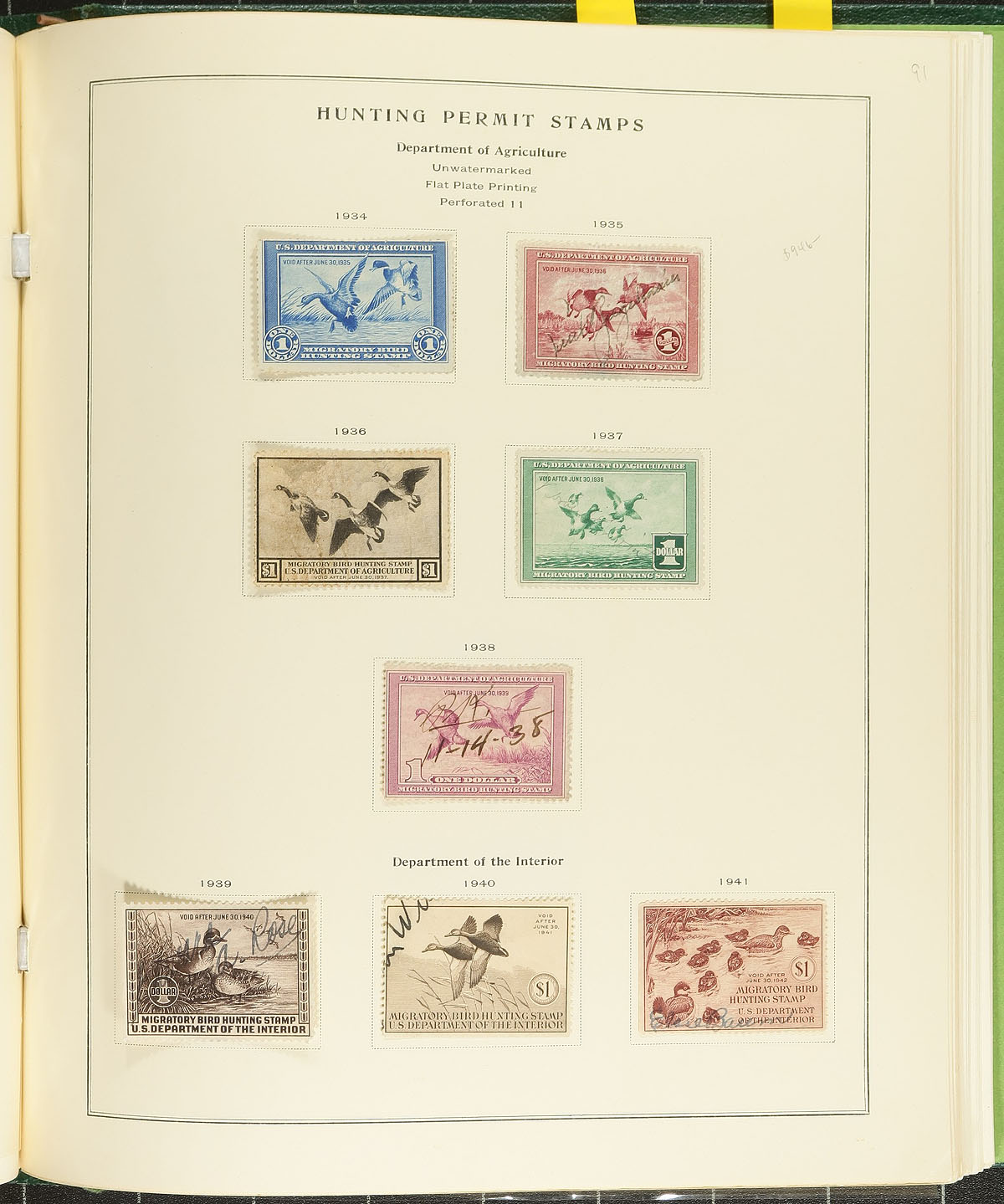 Extensive collection of mint and used United States revenues, containing many hundreds of stamps in a Scott Specialty album. We note a nice variety of revenue types including Telegraph (x54), Documentary (x332), Stock Transfer (x169), along with many other interesting types including Playing Cards, Silver Tax, and more. The lot also includes Hunting Permit stamps (complete from 1934 to 1953, Scott c.v. $946 total), Postal Note (set of 18, plus 90c +3c used on document), and a few Confederate stamps. A nice intermediate collection of these very interesting issues, and should be continued, especially in this album, overall fine to very fine. Online photos show a sampling. Estimate =