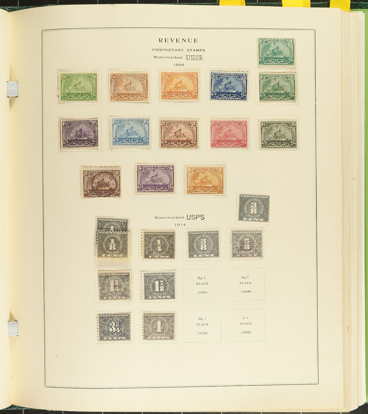Extensive collection of mint and used United States revenues, containing many hundreds of stamps in a Scott Specialty album. We note a nice variety of revenue types including Telegraph (x54), Documentary (x332), Stock Transfer (x169), along with many other interesting types including Playing Cards, Silver Tax, and more. The lot also includes Hunting Permit stamps (complete from 1934 to 1953, Scott c.v. $946 total), Postal Note (set of 18, plus 90c +3c used on document), and a few Confederate stamps. A nice intermediate collection of these very interesting issues, and should be continued, especially in this album, overall fine to very fine. Online photos show a sampling. Estimate =