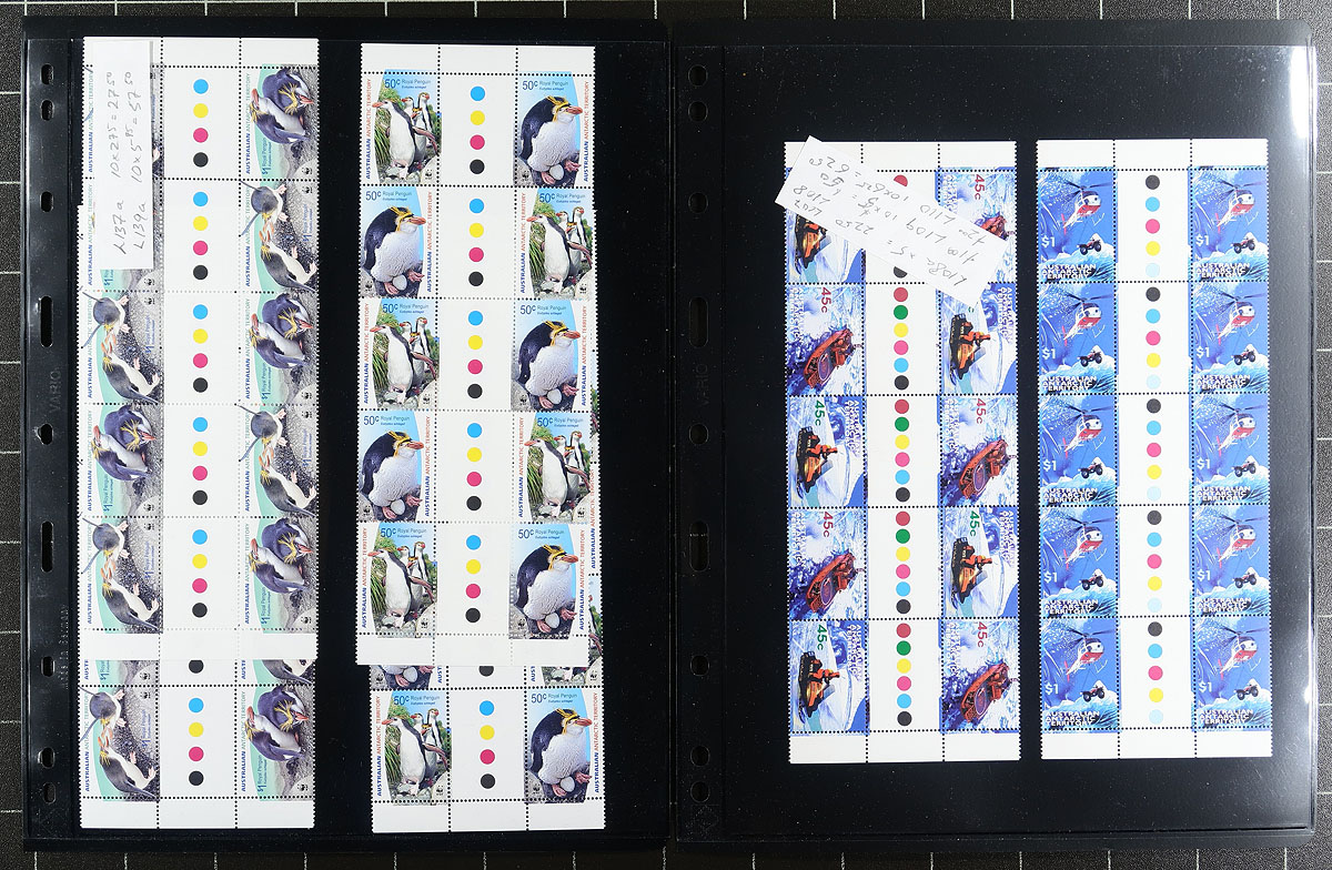 Nice group of never hinged Traffic Light gutter blocks of 10, 1998-2012, containing 45 blocks in total. This well organized lot ranges from Scott #L108/L167 with many of the items identified cataloguing $10 and up. A nice clean lot from this popular collecting region, ideal for collectors and dealers alike. All pages photographed online, and should be worth our estimate. Estimate =