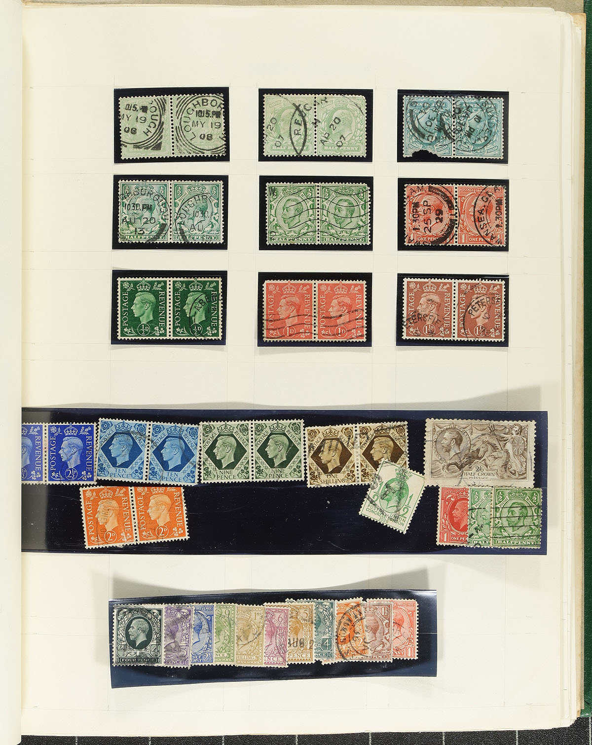 Collection of used Great Britain, 1910's-1999, containing over 1,000 stamps in Stanley Gibbons pages in 3 springback albums. The collection generally ranges from Scott #157/1883, containing several modern sets, a few souvenir sheets, Machins, and high denomination stamps. The majority of material generally ranges from the Wildings onwards, with a complete run of commemoratives from 1973 to 1983, and some material cataloguing $5 to $10 each. A nice starter lot of Great Britain issues, overall fine to very fine. Estimate =