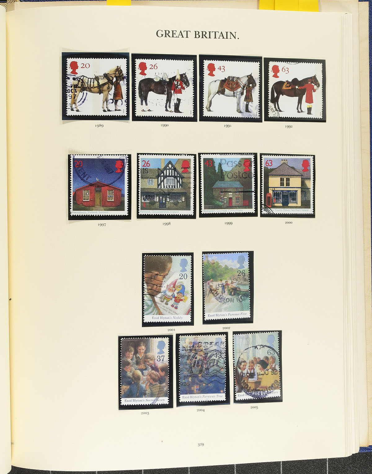 Collection of used Great Britain, 1910's-1999, containing over 1,000 stamps in Stanley Gibbons pages in 3 springback albums. The collection generally ranges from Scott #157/1883, containing several modern sets, a few souvenir sheets, Machins, and high denomination stamps. The majority of material generally ranges from the Wildings onwards, with a complete run of commemoratives from 1973 to 1983, and some material cataloguing $5 to $10 each. A nice starter lot of Great Britain issues, overall fine to very fine. Estimate =