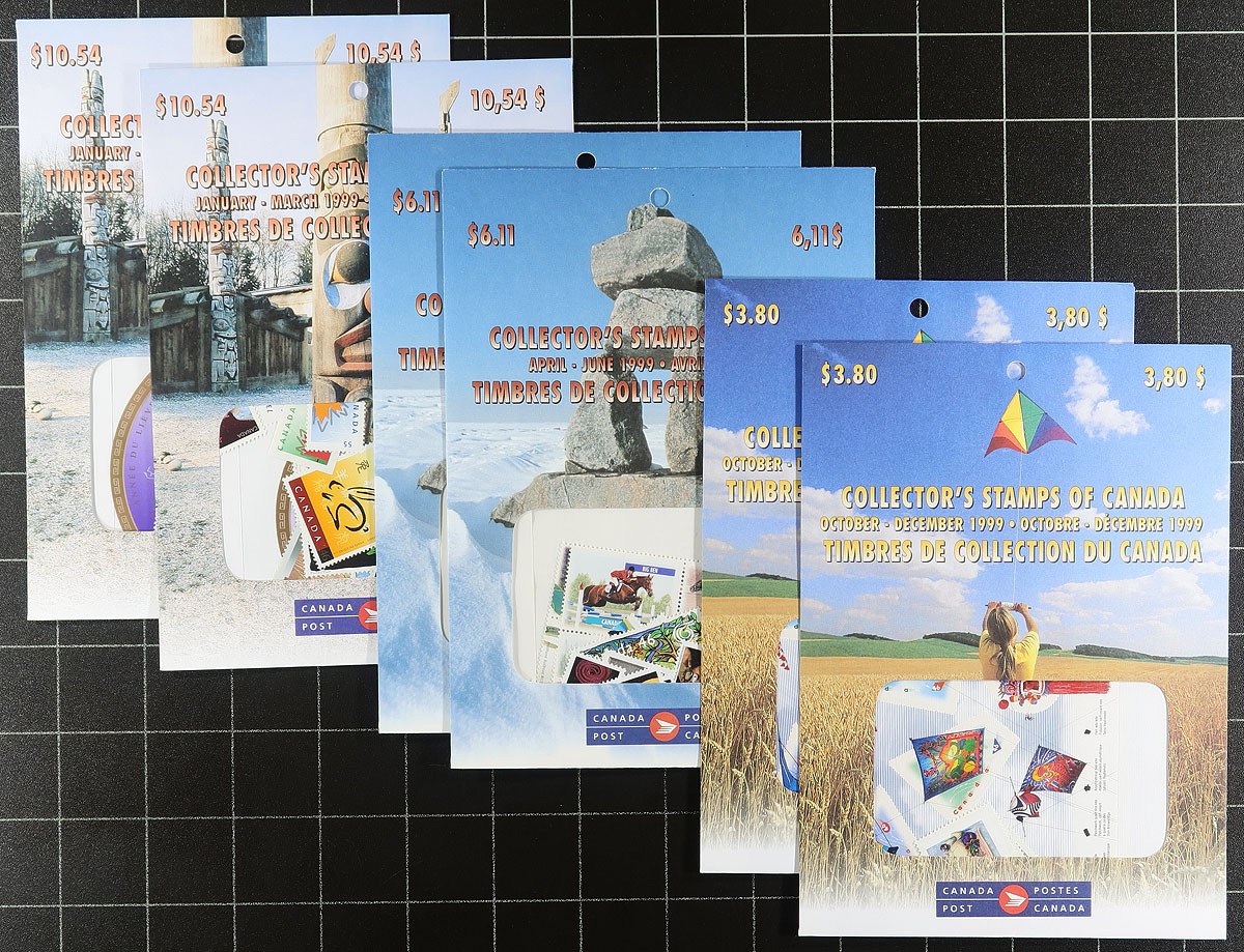 Quarterly Pack Potpourri. An "odds and ends" offering of 36 Post Office sealed Quarterly Packs ranging from 1993 to 2012 (with some duplicated). Includes many sought-after die cut singles as well as blocks and souvenir sheets. These are now listed in Unitrade but not yet priced, conservatively grouped / counted by the original purchase price, which is lower than what is actually enclosed in the pack due to the increase in value of the Permanent stamps. Original Canada Post cost =