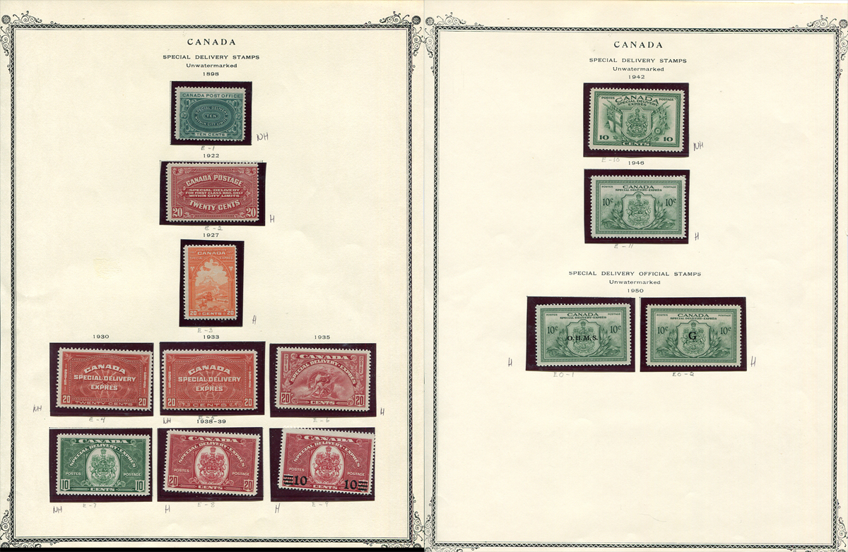 Fresh, F-VF and fault-free complete mint run of all the Special Delivery and overprinted Official Special Delivery stamps. The NH stamps in the lot consist of #E1a, E4, E5, E7 and E10. Nice to get them all at once. 2026 Scott US$856.00 =