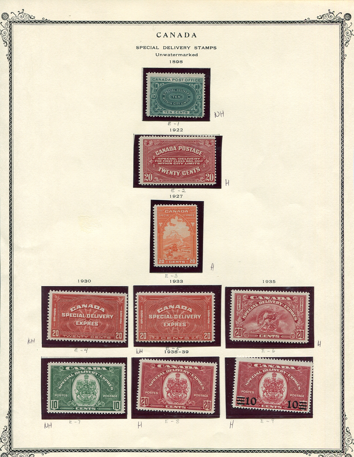 Fresh, F-VF and fault-free complete mint run of all the Special Delivery and overprinted Official Special Delivery stamps. The NH stamps in the lot consist of #E1a, E4, E5, E7 and E10. Nice to get them all at once. 2026 Scott US$856.00 =