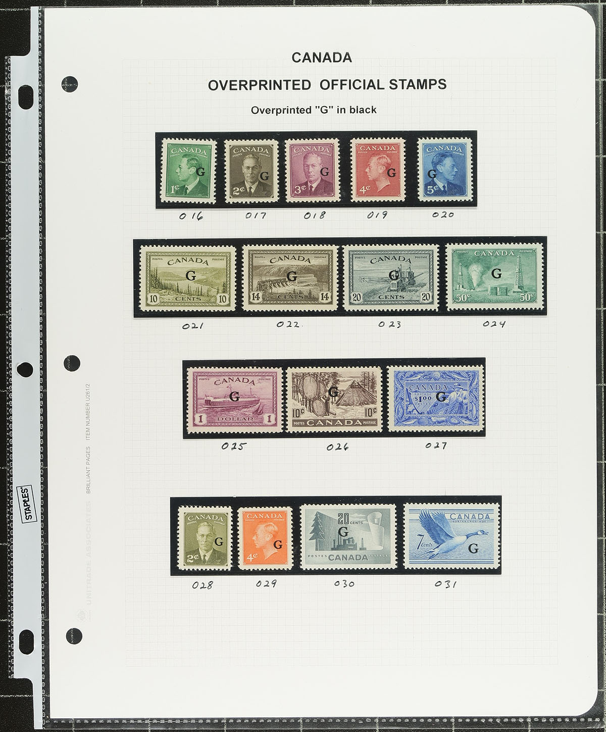 Select quality collection of "OHMS" and "G" overprinted Official issues, including singles, plate blocks and varieties. Of particular note is a VF+ NH #O9, the 50c Lumbering with OHMS overprint. The lot comes with a meticulously detailed inventory list. If you don't have any Canadian Officials yet, here's the nicest group of these popular "Back of the Book" issues we've seen in a while! Owner's 2022 Unitrade =