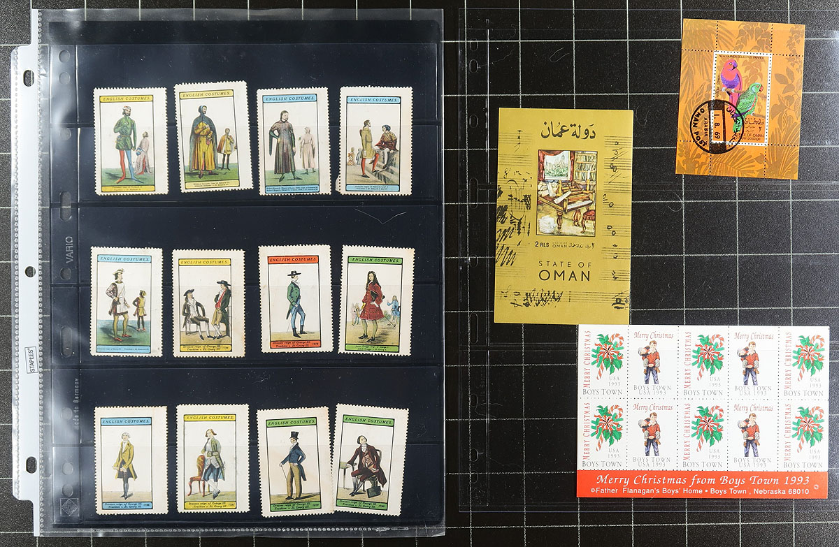 Lovely accumulation of worldwide seals and labels, 1920's-1990's, containing many hundreds of items housed in a binder. A cursory check showed material from Canada, United States, European countries, and a few other regions, noting singles, sets, blocks, panes, and more, consisting of local and international stamp shows and exhibitions, Christmas seals, wildlife labels and other society funding labels, and much. We note many interesting areas of interest for the cinderella, topical and thematic collector including "Local Dog Post" from Shrub Oak, New York. All pages photographed online. Estimate =