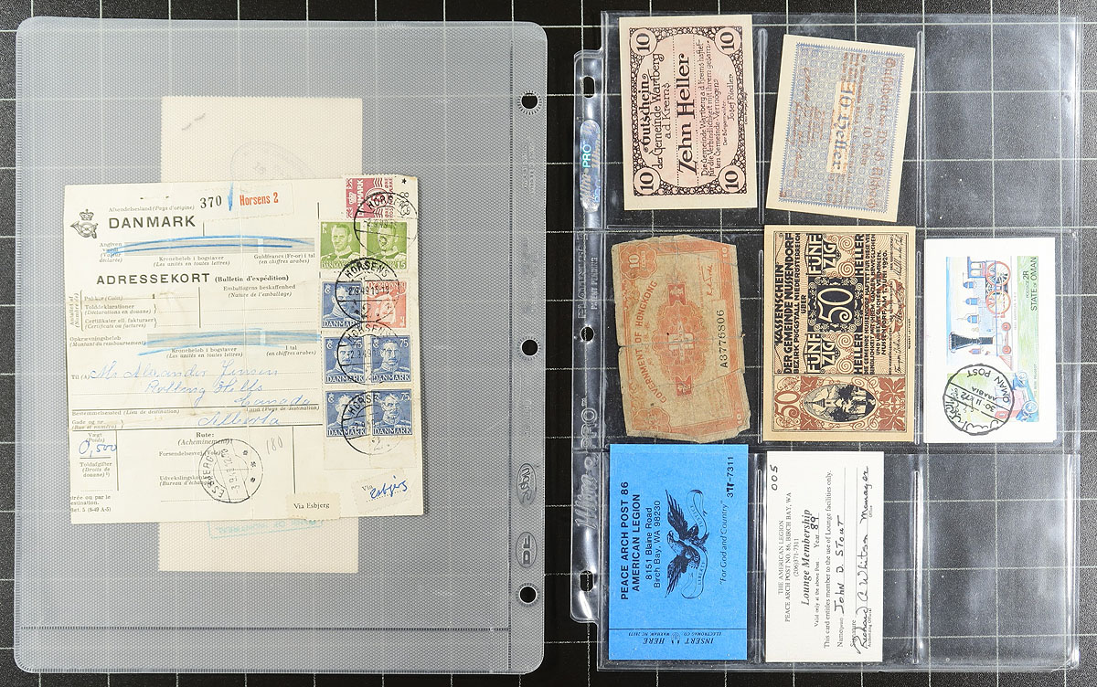 Lovely accumulation of worldwide seals and labels, 1920's-1990's, containing many hundreds of items housed in a binder. A cursory check showed material from Canada, United States, European countries, and a few other regions, noting singles, sets, blocks, panes, and more, consisting of local and international stamp shows and exhibitions, Christmas seals, wildlife labels and other society funding labels, and much. We note many interesting areas of interest for the cinderella, topical and thematic collector including "Local Dog Post" from Shrub Oak, New York. All pages photographed online. Estimate =