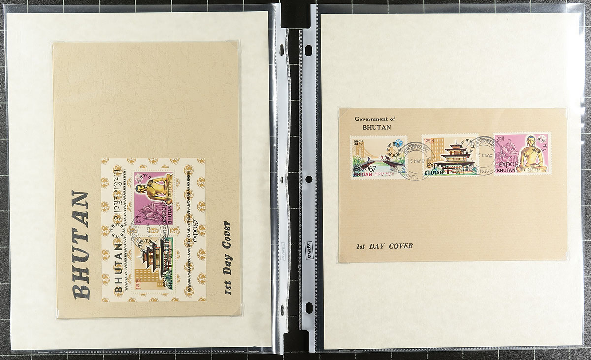 Expo 1967 Topical collection. A clean collection of 'Expo 67' worldwide covers, containing 70 items neatly arranged on homemade pages in a binder. We note singles, sets, and souvenir sheet frankings, many having the Expo logo in the stamp design, along with several colourful cachets, pavilion postmarks, etc. A nice clean lot for topical and thematic collectors from this important time in Canada's history. Estimate =